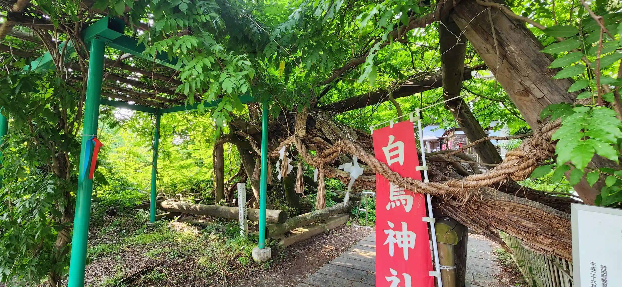 藤の木が横倒しになり、いつ倒れてもいー感じのそれが雰囲気いー感じの神社です。