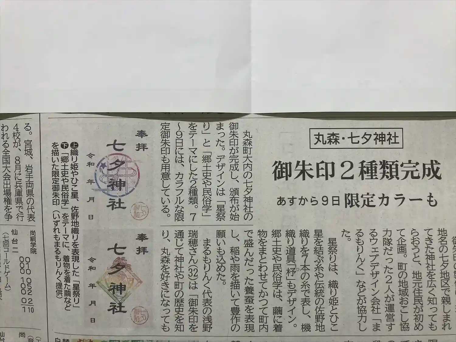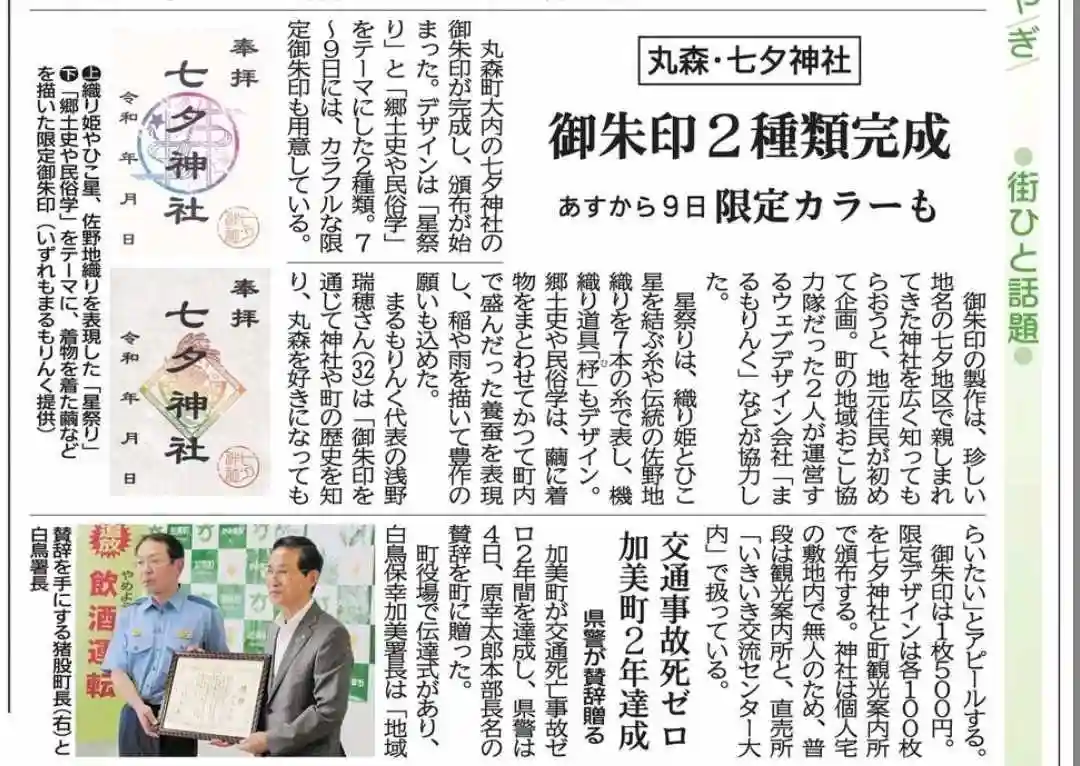 七夕限定の御朱印があると、新聞に掲載。