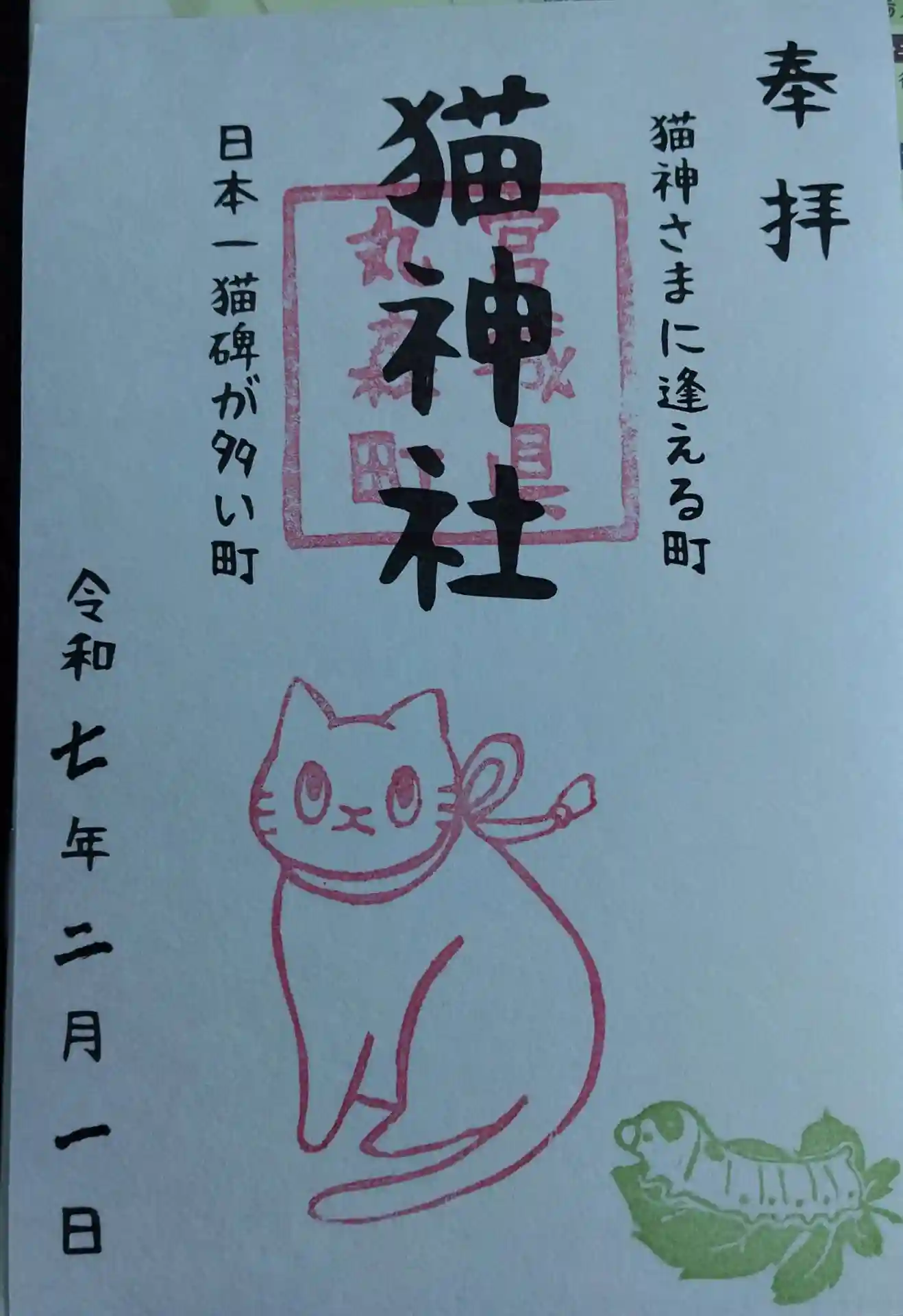 猫神社 御朱印です 先月2月22日(猫神祭が行われました 丸森和紙使用の100名限定御朱印もあります
