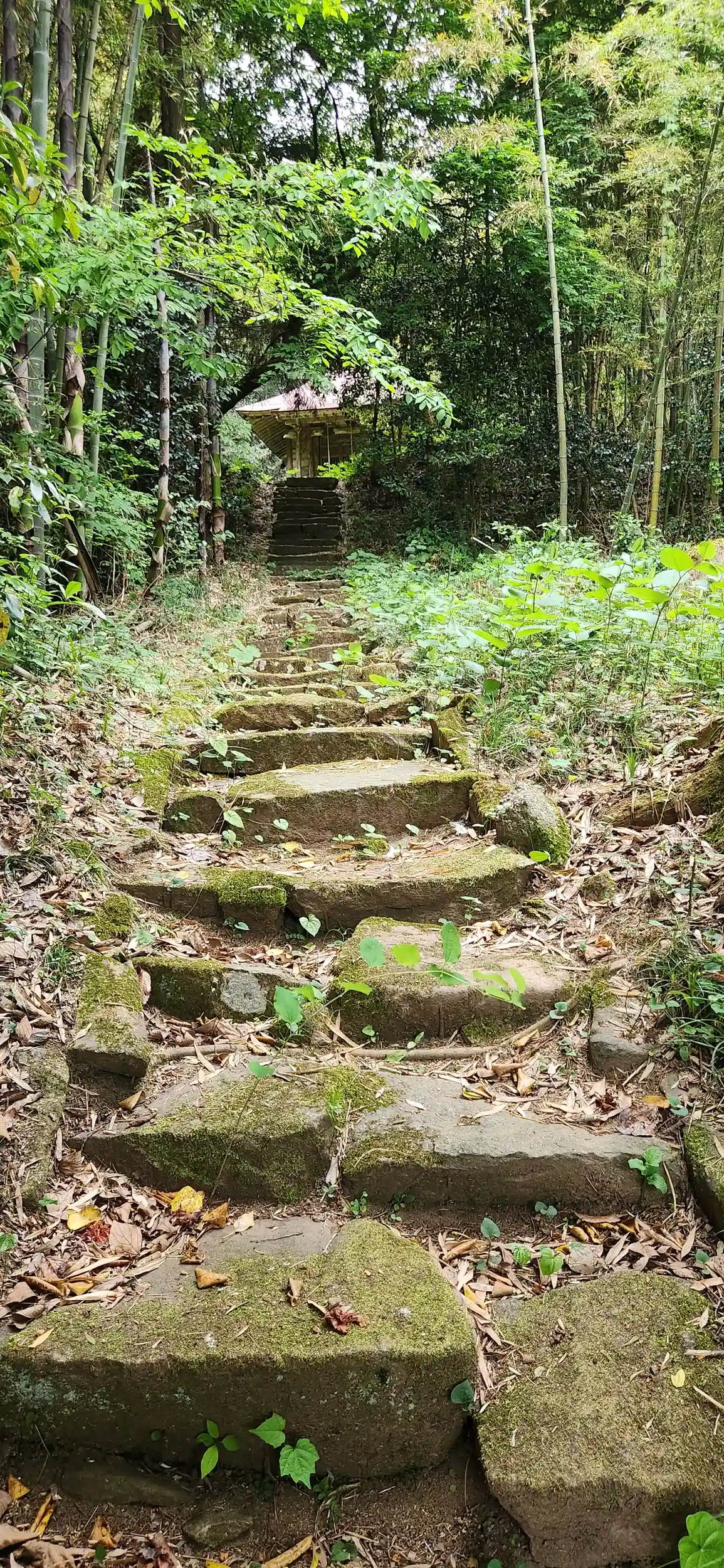 片山観音堂。路駐して立ち寄りました。民家の脇の道をのぼると間もなく。竹林に囲まれた観音堂。