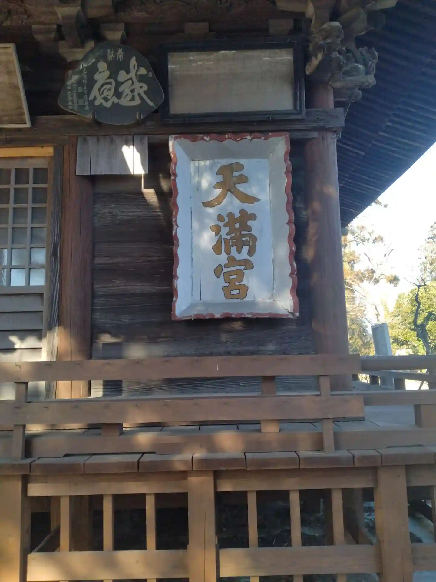 天神社 拝殿前正面左上に掲げてある(天満宮の扁額です