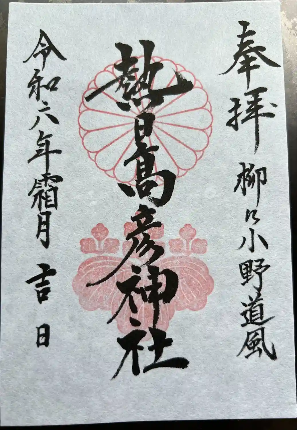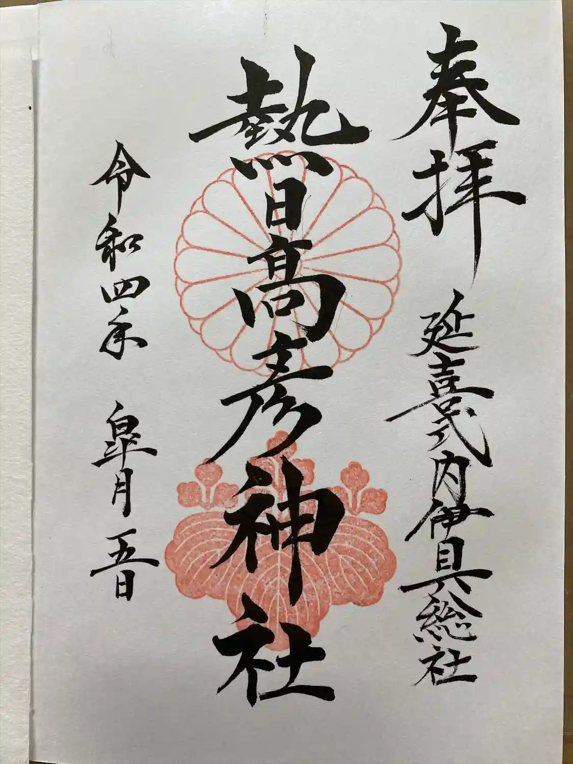 熱日彦高神社 書き置き御朱印です
