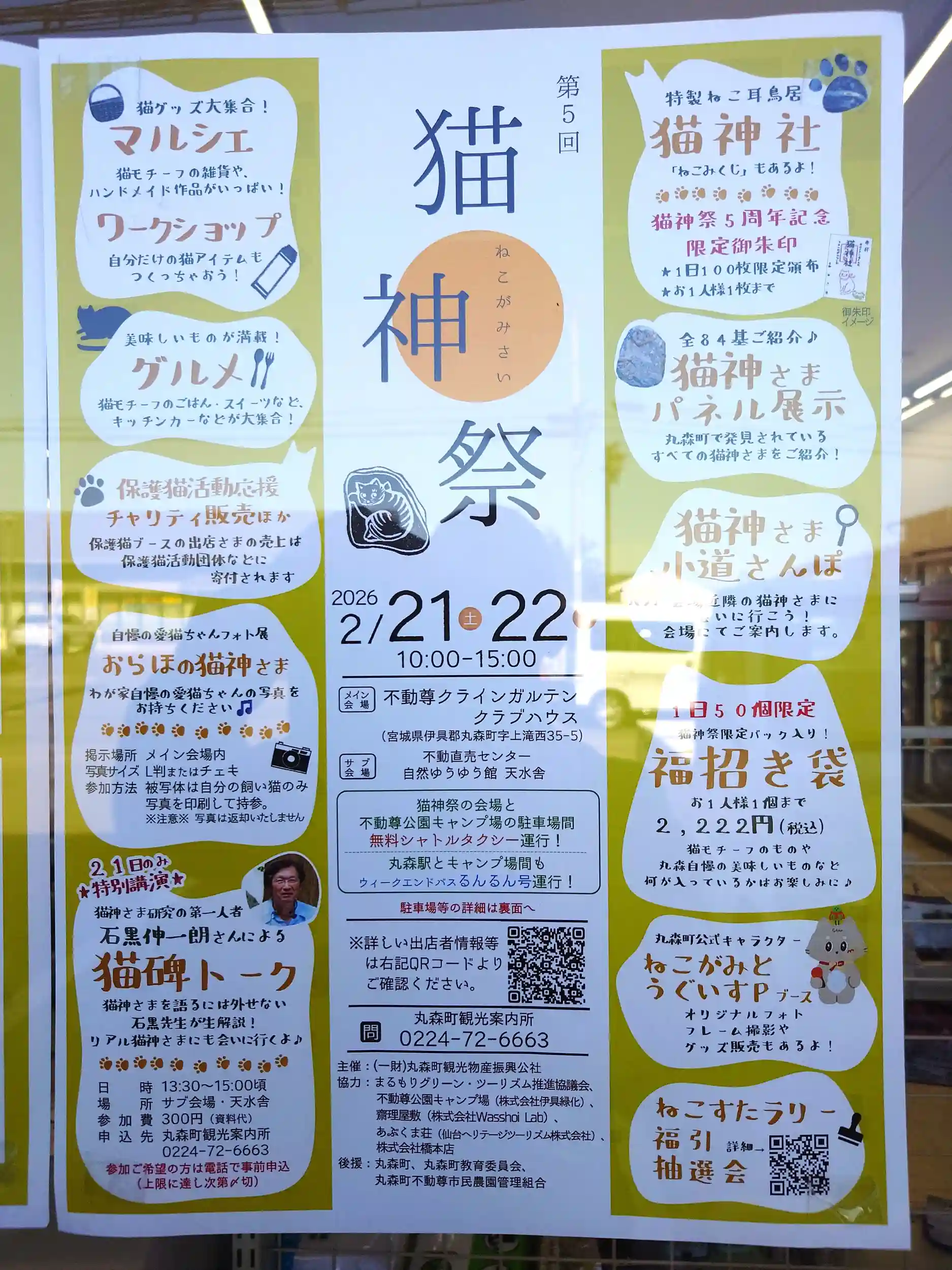 参拝後に『猫神祭』会場に車で向いましたが駐車場が満車で停められず断念しました。 チラシを見ると街中の駐車場に停めて無料送迎があったようです。