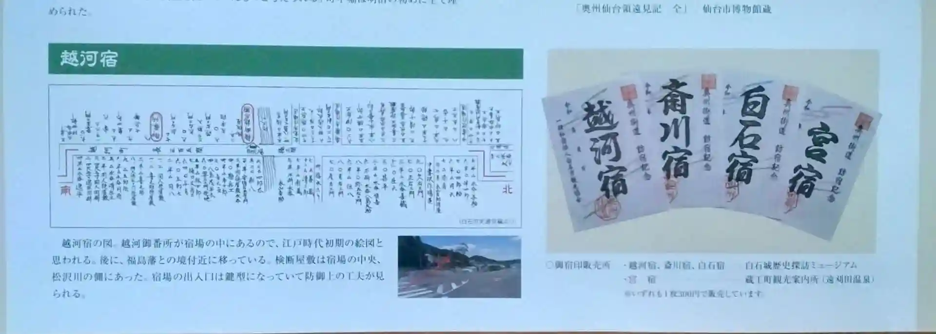 奥州街道 越河宿と御宿印販売所と値段に、ついて書かれてます