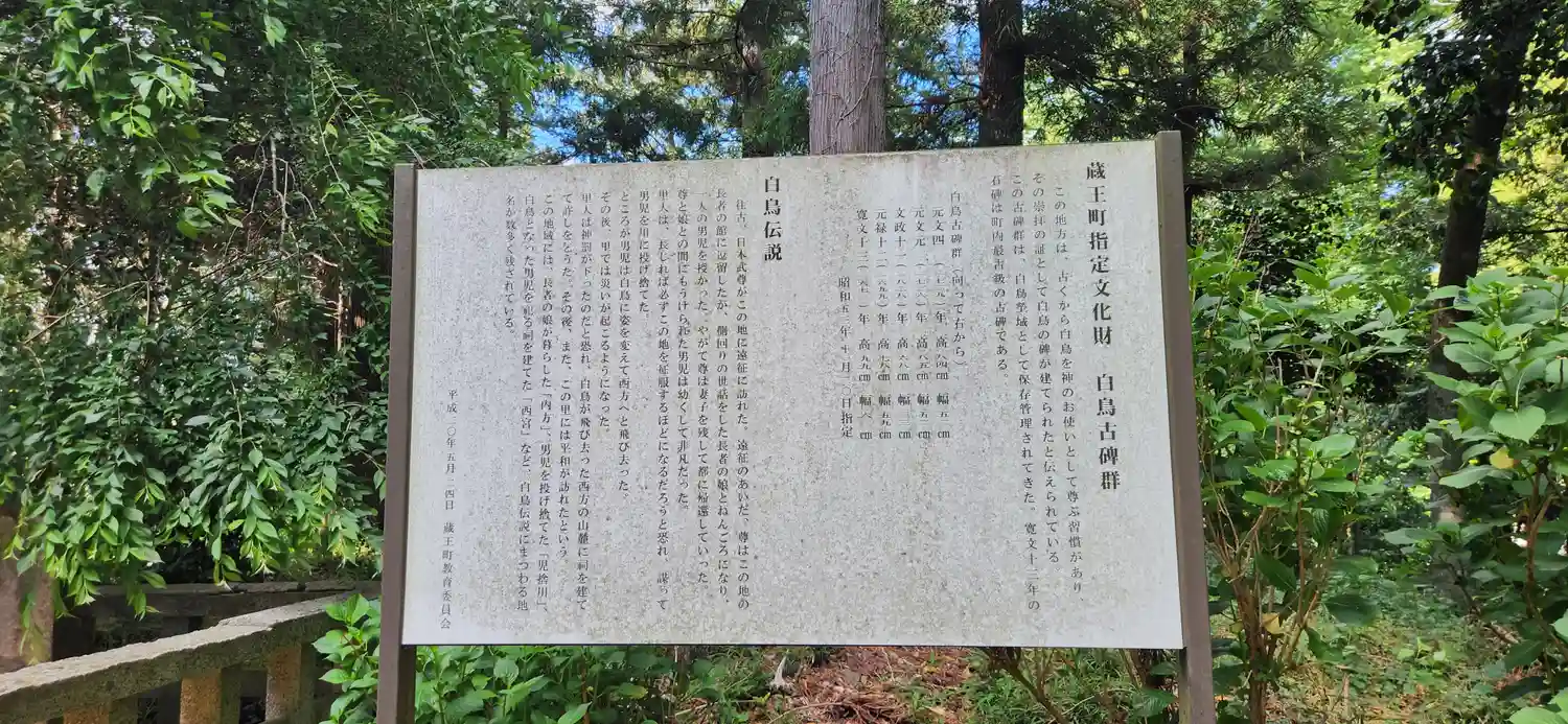 刈田嶺神社(白鳥大明神)境内にある(刈田嶺神社の由緒書き)です