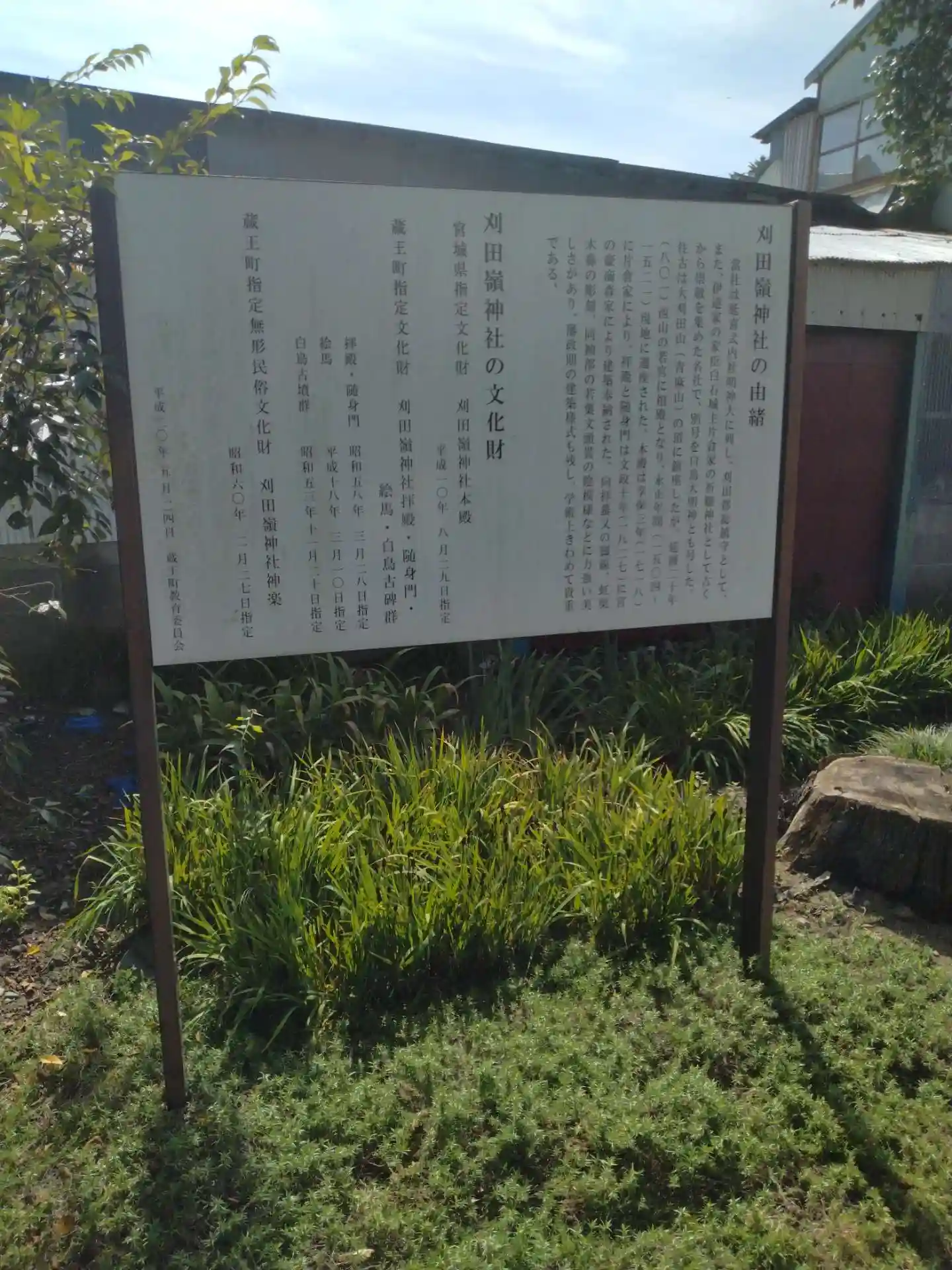 刈田嶺神社 由来などの説明書き