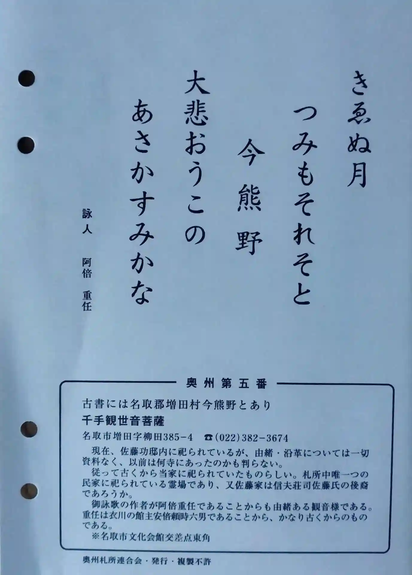 奥州三十三観音霊場、第五番札所…