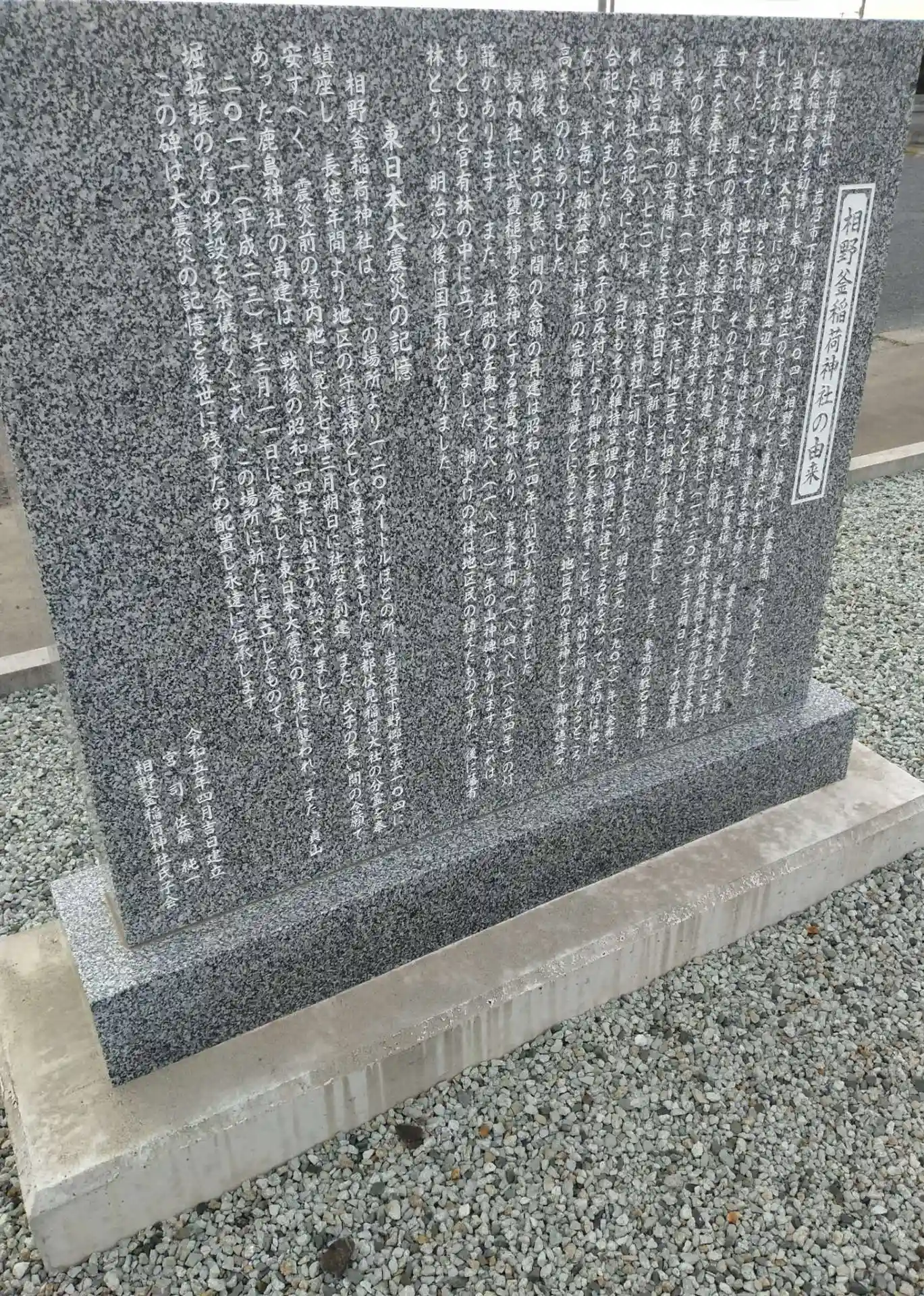 稲荷神社(相野釜) 入口にある(相野釜稲荷神社)の由来と東日本大震災の記憶です