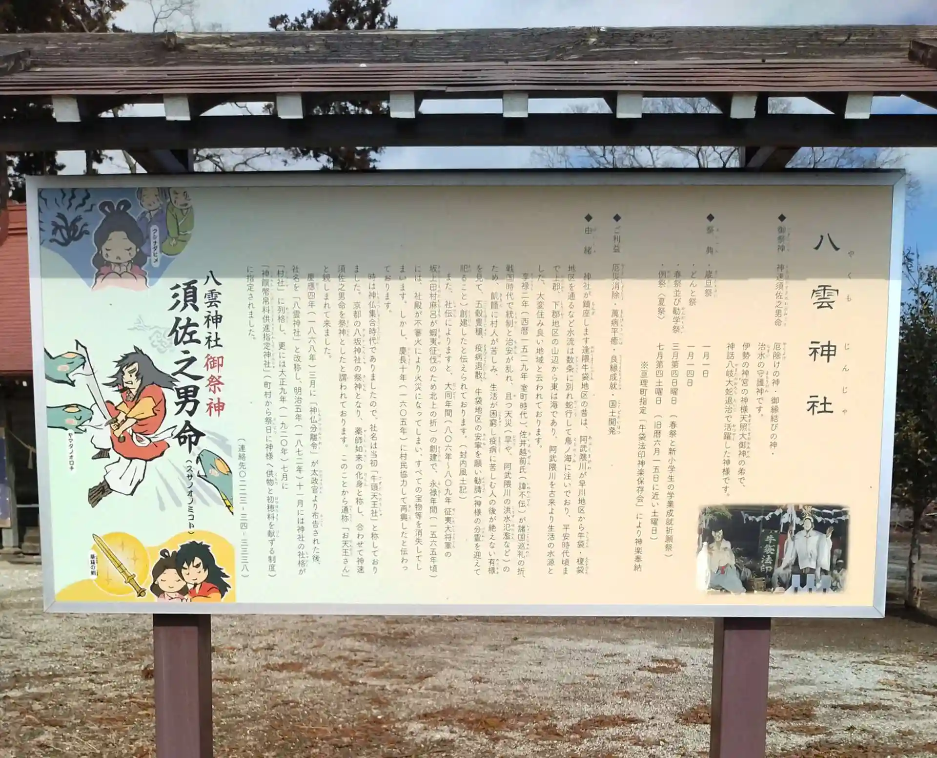 八雲神社 拝殿前正面右側に、八雲神社御祭神須佐之男命様の歴史が、書いてあります