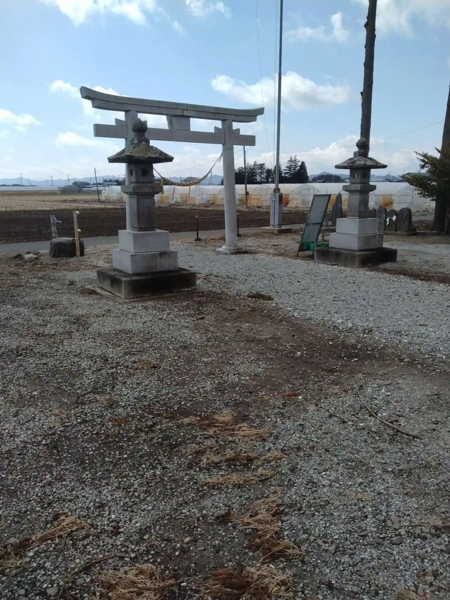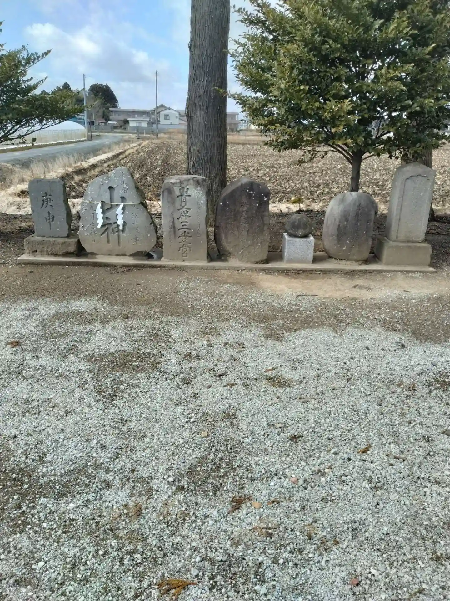 八雲神社 鳥居正面左側に、庚申、山神、青麻三光宮、石碑の様子です
