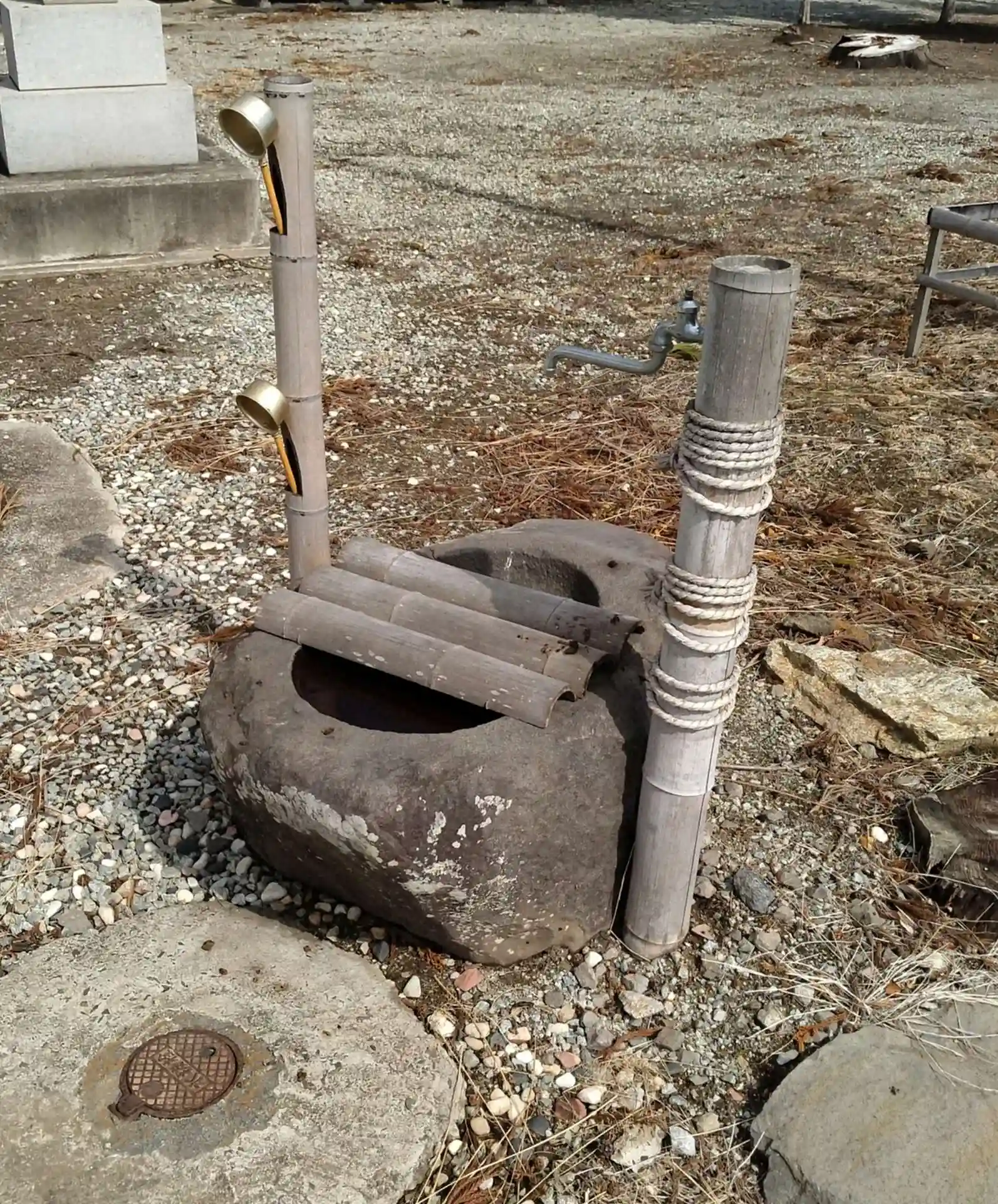 八雲神社 鳥居正面から、参道を進んでいくと右側に手水(推定)です