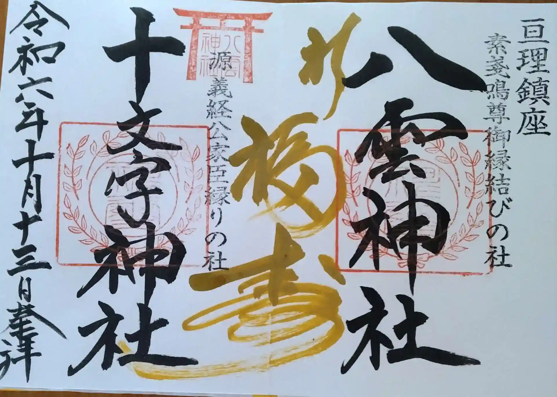 八雲神社 社務所に電話してから、社務所にて直書き見開き御朱印頂戴致しました。(右側八雲神社と左側十文字神社)です