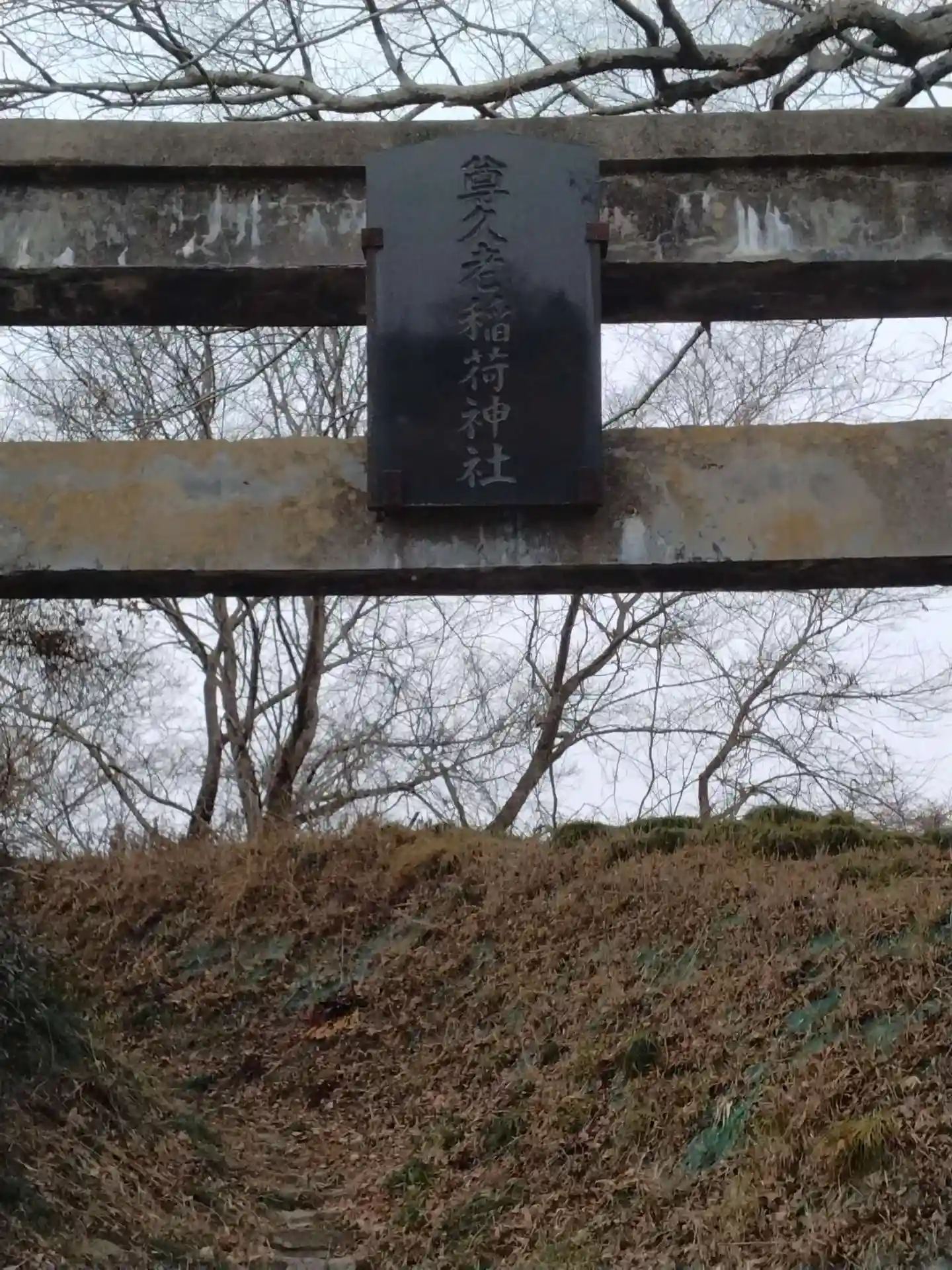 尊久老稲荷神社 入口から見た、鳥居の様子あ