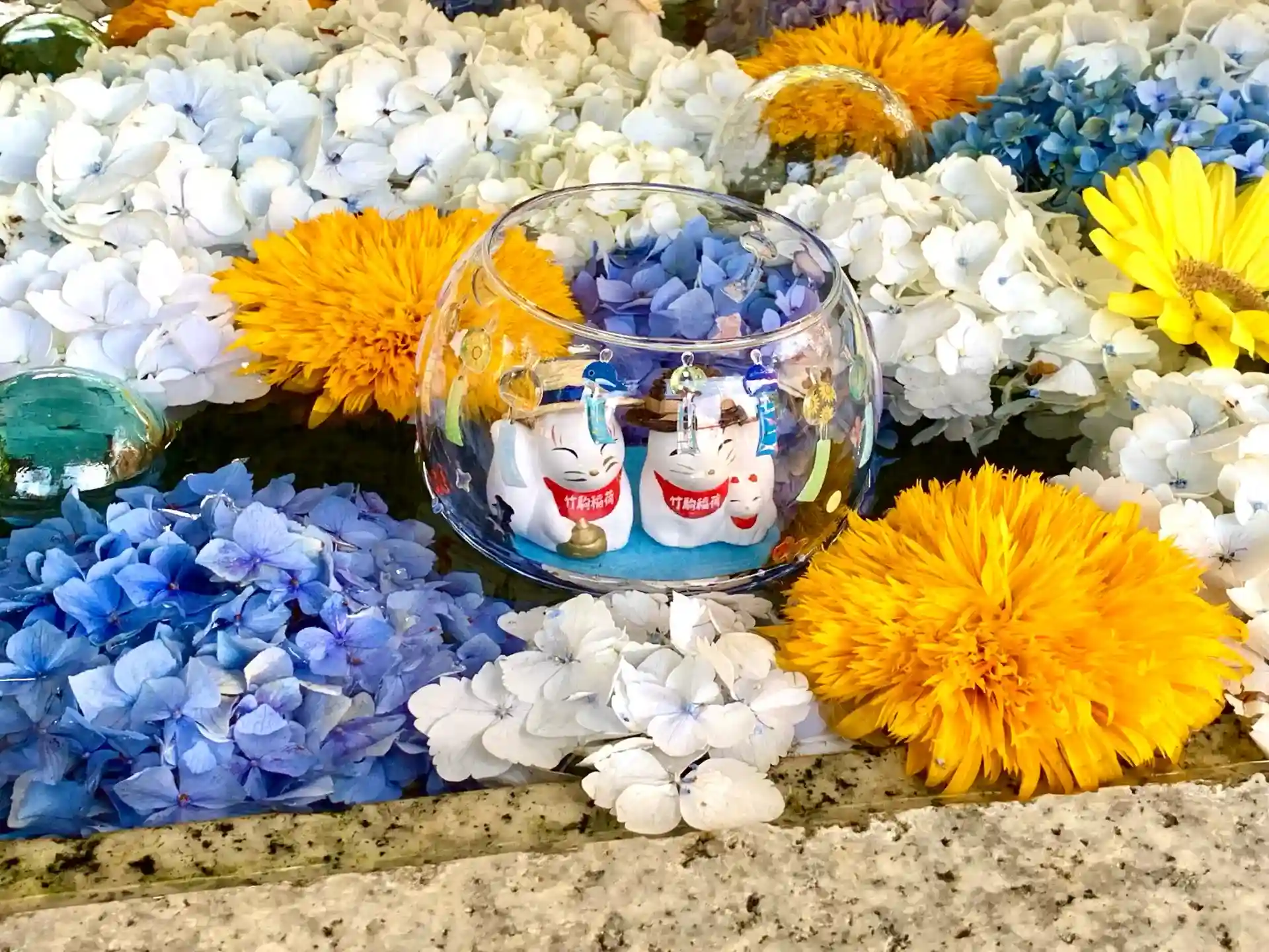風鈴アーチ🎐にお狐様風車🎐と風車の回る音色が聴こえてきそうです。