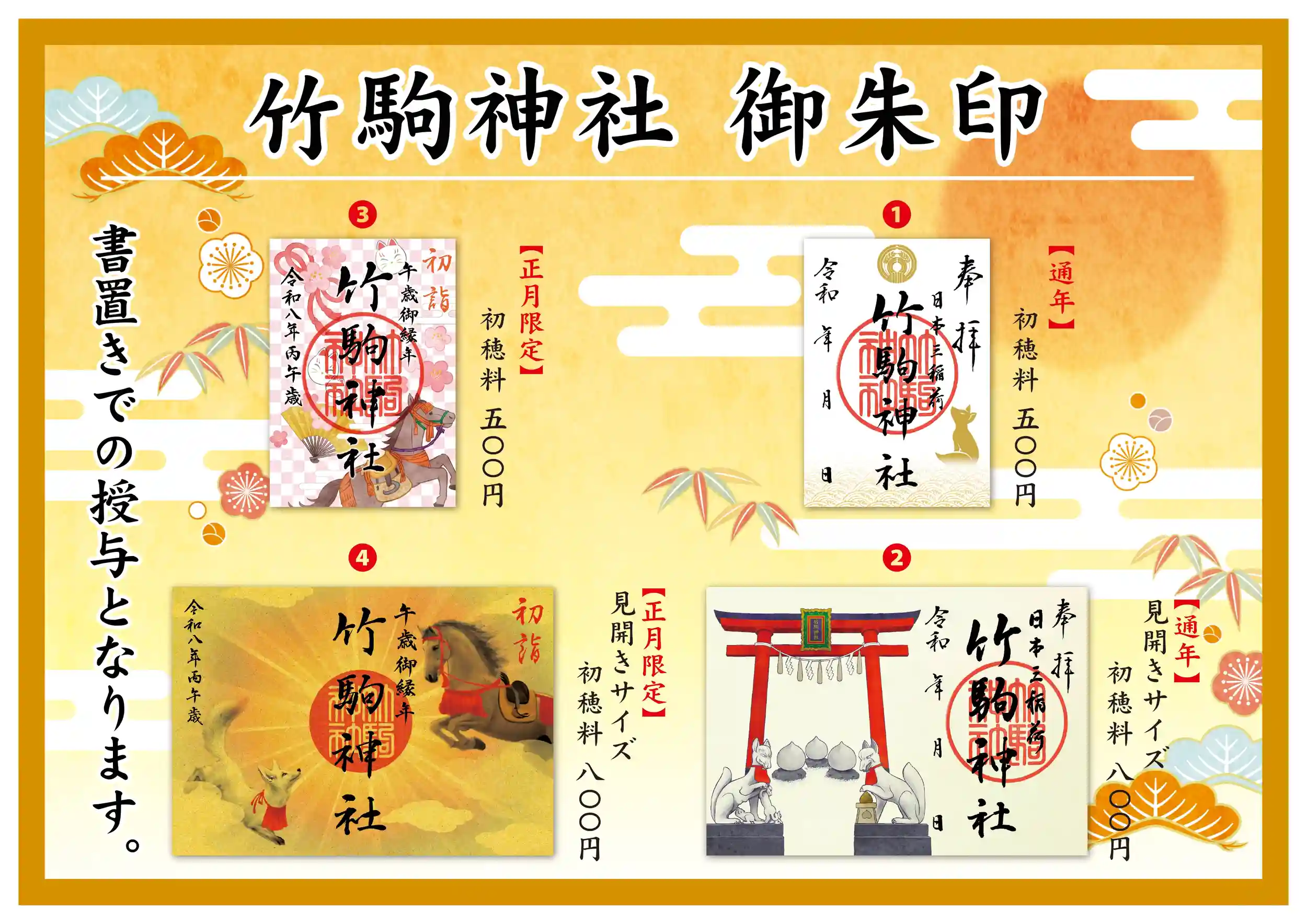 竹駒神社では令和八年元旦より通常の御朱印の他に、二種類の正月限定御朱印(数量限定)を頒布いたします💡