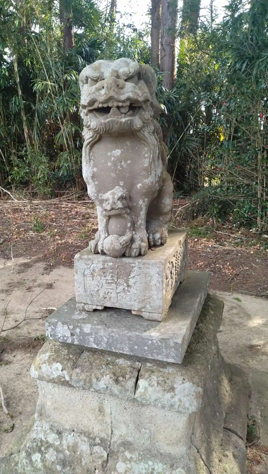 愛宕神社 境内中央にある(阿形の狛犬さん)の様子です