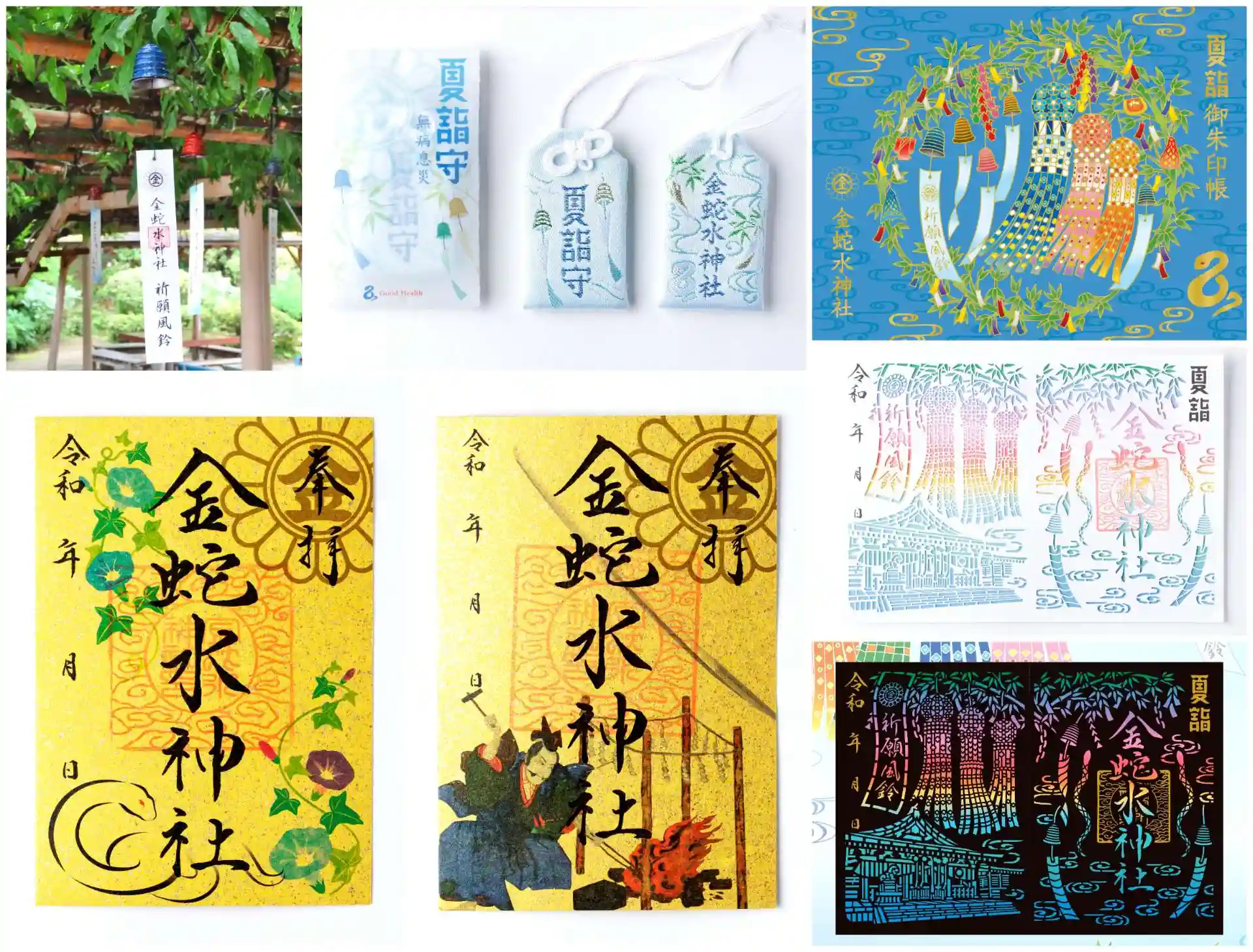 現在7月28日より #夏詣 第Ⅱ期を開催中です。8月季節の #御朱印 紙は「#朝顔 」。爽やかな青い朝顔のものに変わります。#竹駒神社 での宗近作「#小狐丸」展示を記念しお出ししている「三条宗近朱印」(~24日)、夏詣御守・夏詣切絵朱印・夏宵詣朱印(ライトアップ時間のみ)も頒布中です。「願い風鈴」も増えて境内一杯に涼し気な音を響かせています。どうぞ8月もお詣りください。