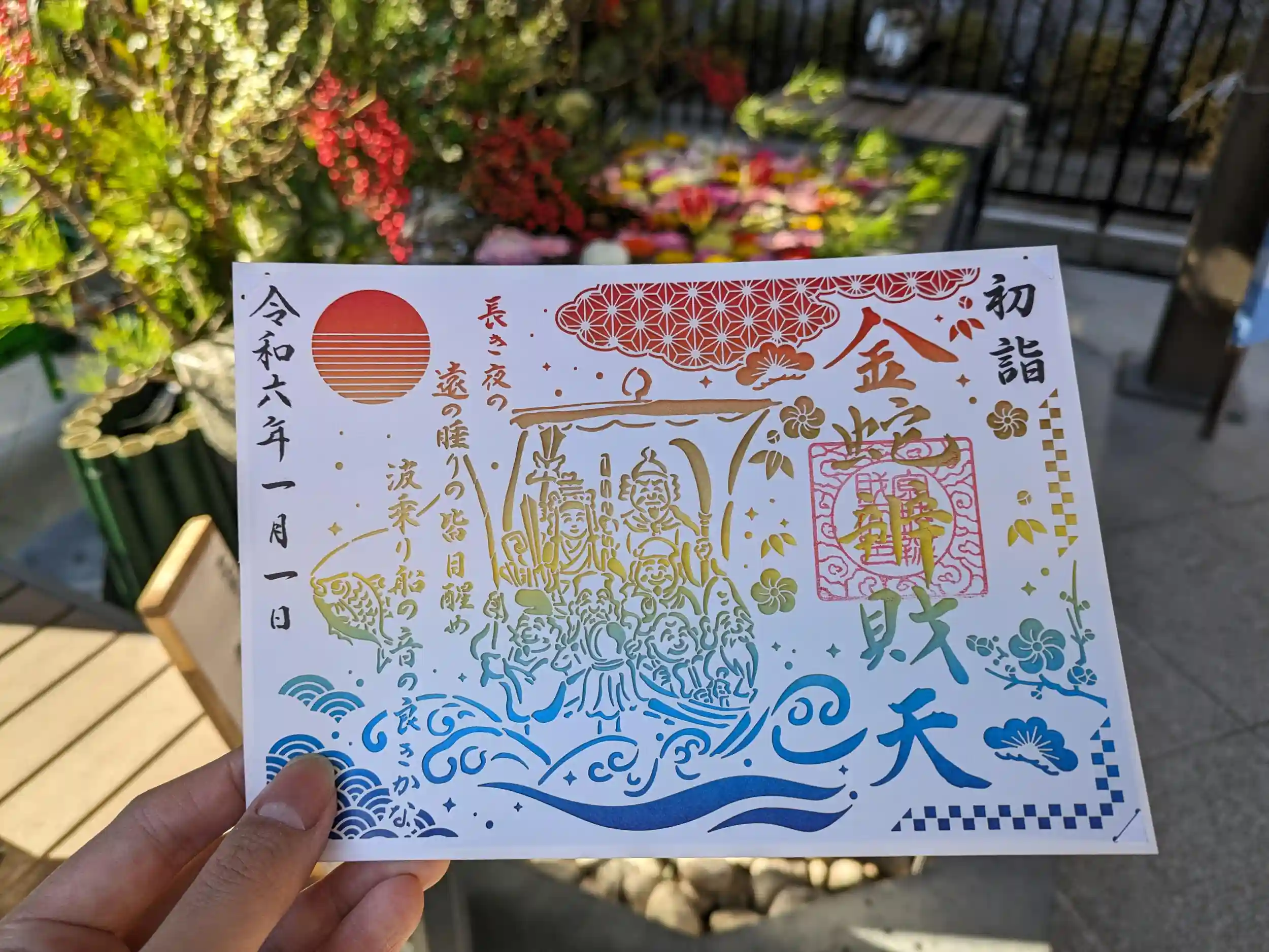 参拝後、「弁財天宝船切絵朱印(切り絵)」を"1月1日"付けでいただきました。