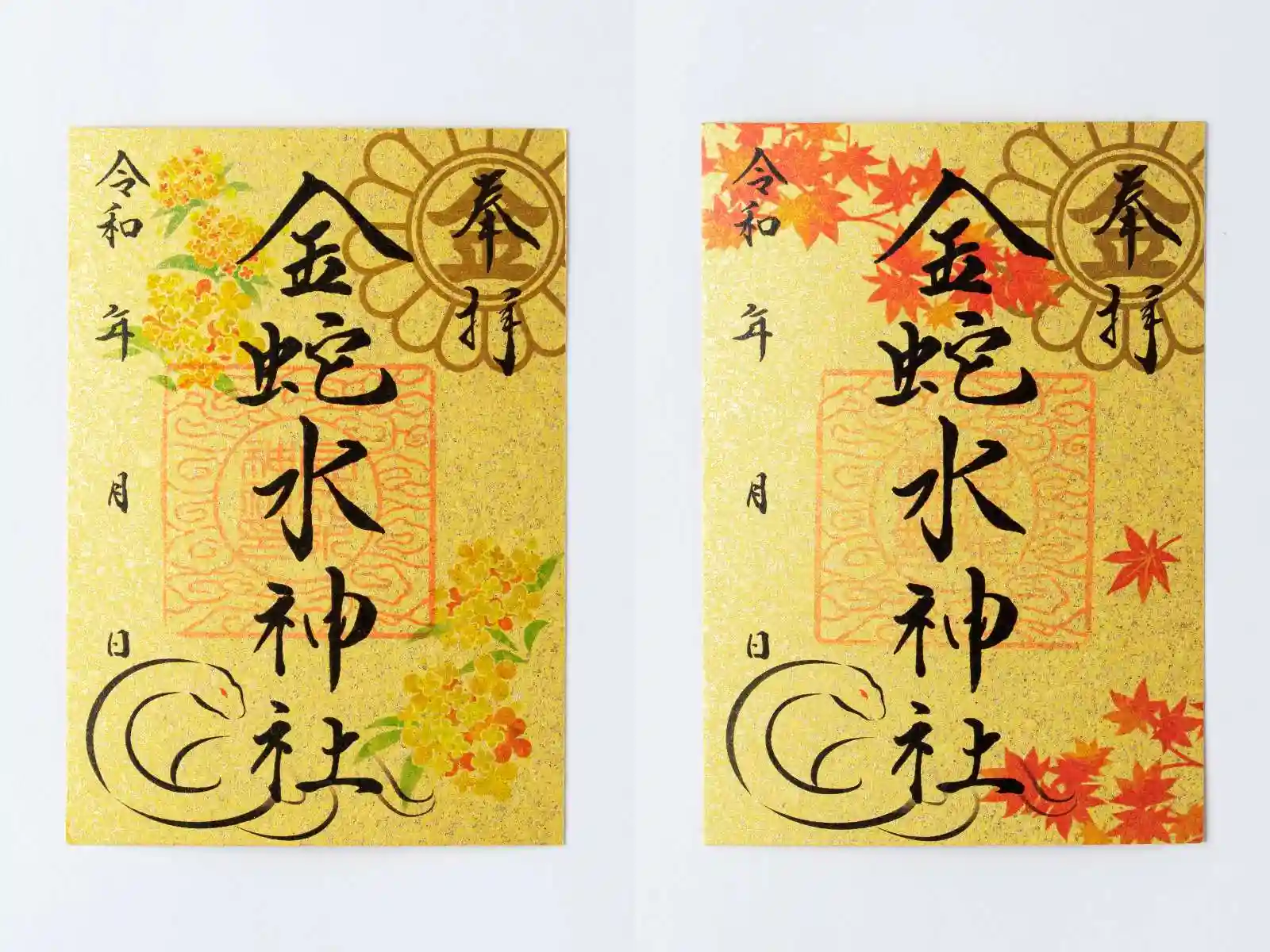 9月中授与しておりました月替りの金嶺紙「金木犀 きんもくせい」朱印紙は月末30日迄。10月からは「紅葉 もみじ」に替わります。