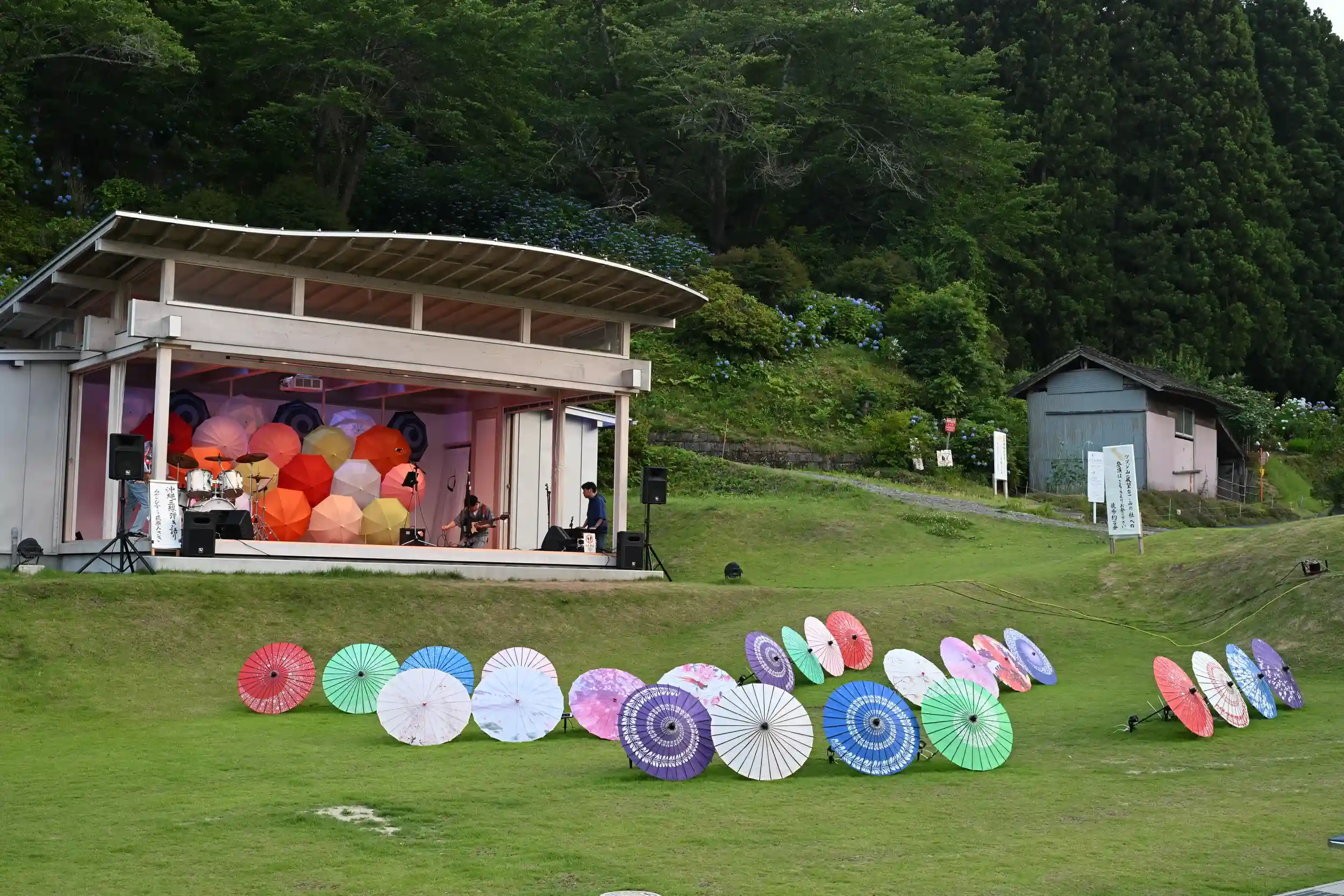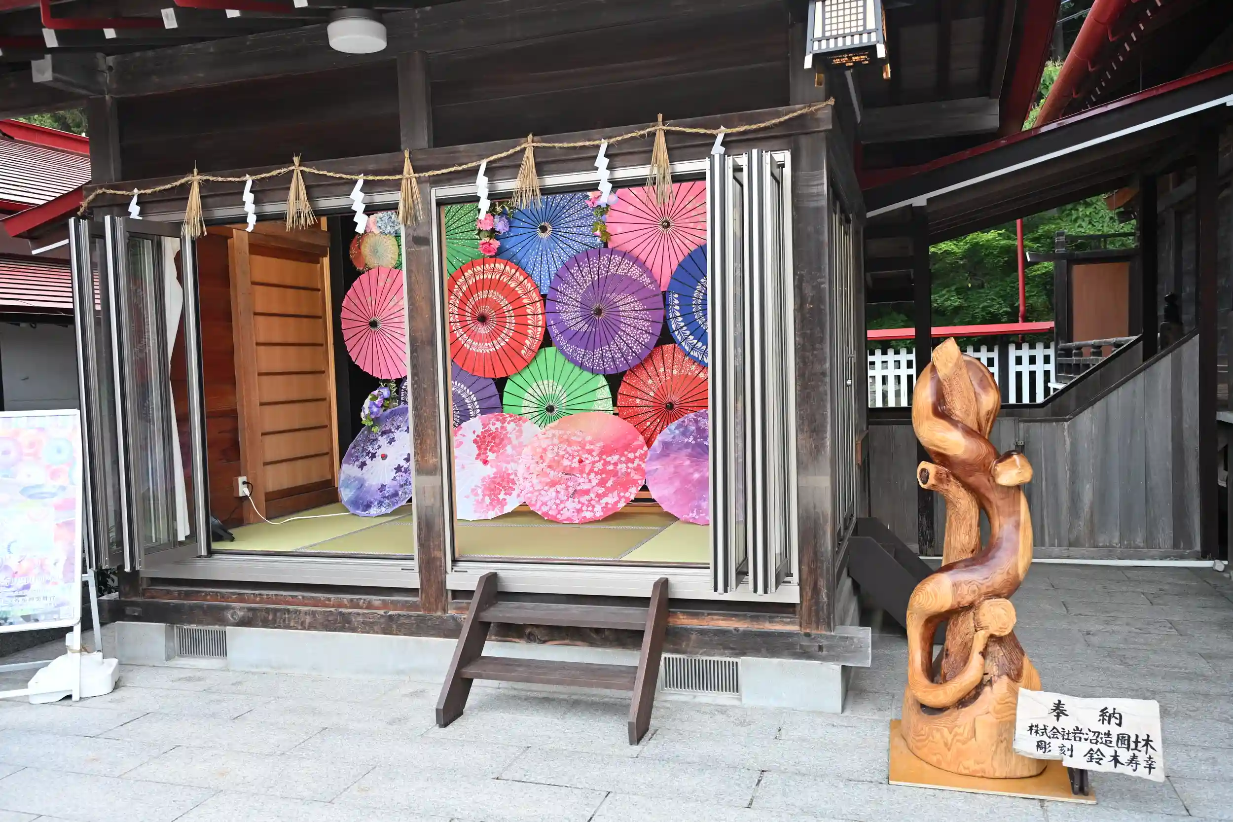 境内の和傘飾りは素敵です。