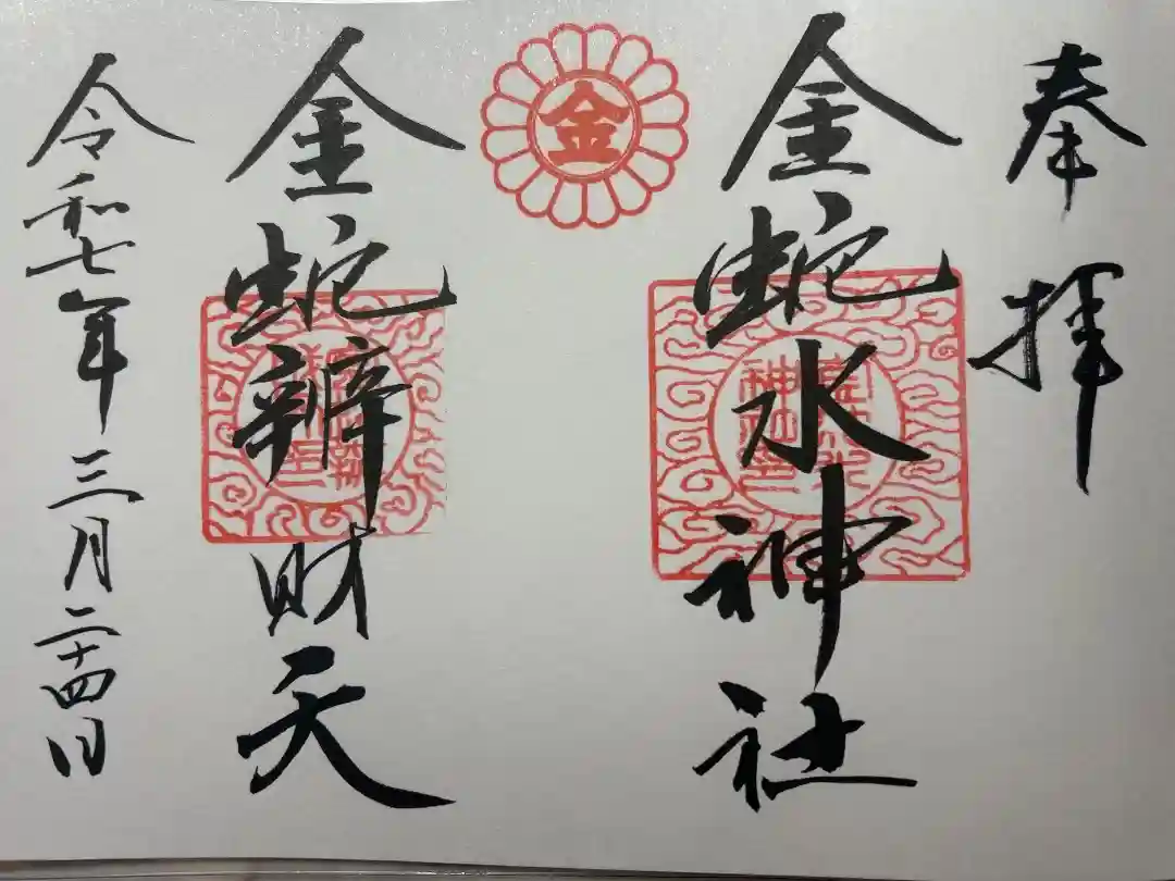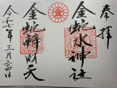 真ん中に金蛇水神社と書かれ、金蛇水神社印が押されています。