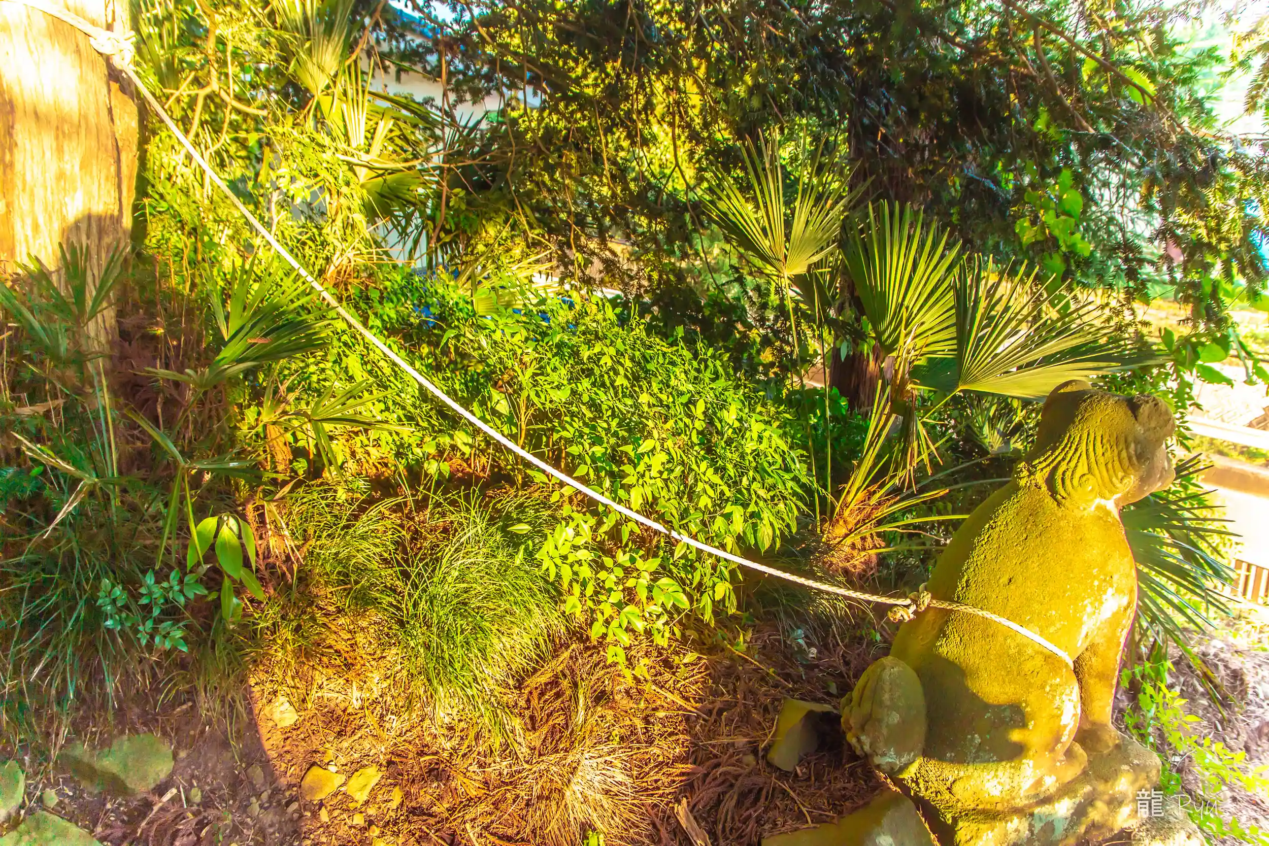 狛犬さんアゴどうした?繋がれてるし逃げちゃうのかな?