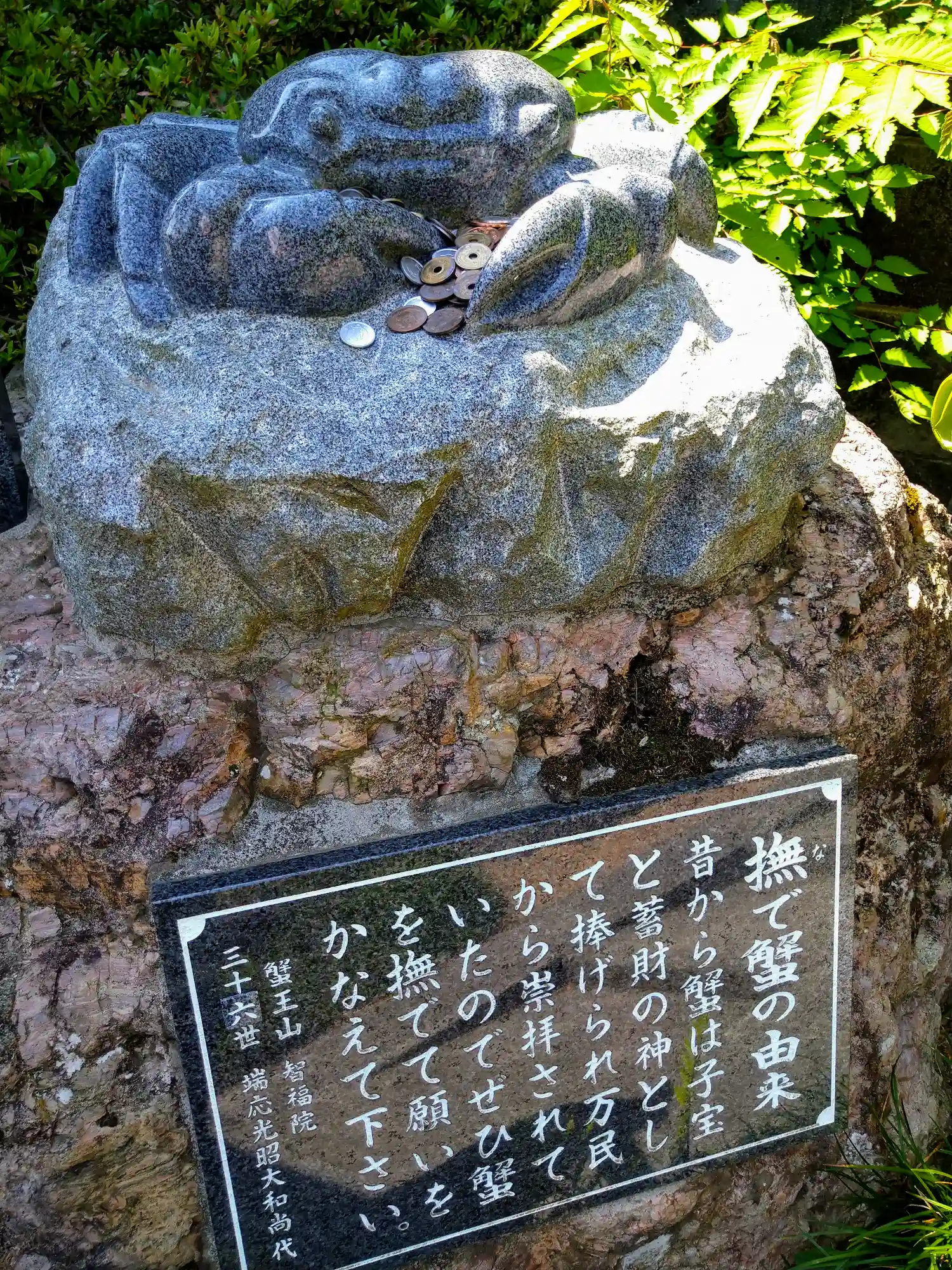 智福院 参道左側にある(蟹像と撫で蟹像の様子です)