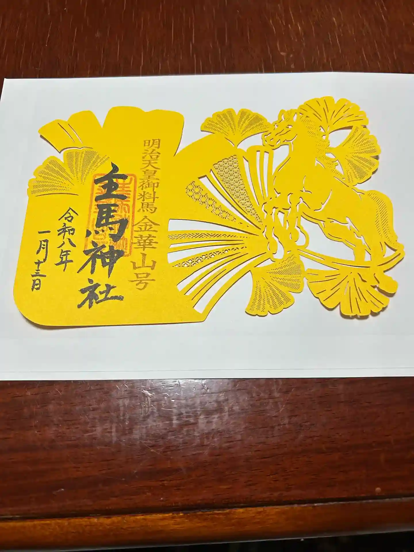 主馬神社の午年の限定切り紙御朱印です。