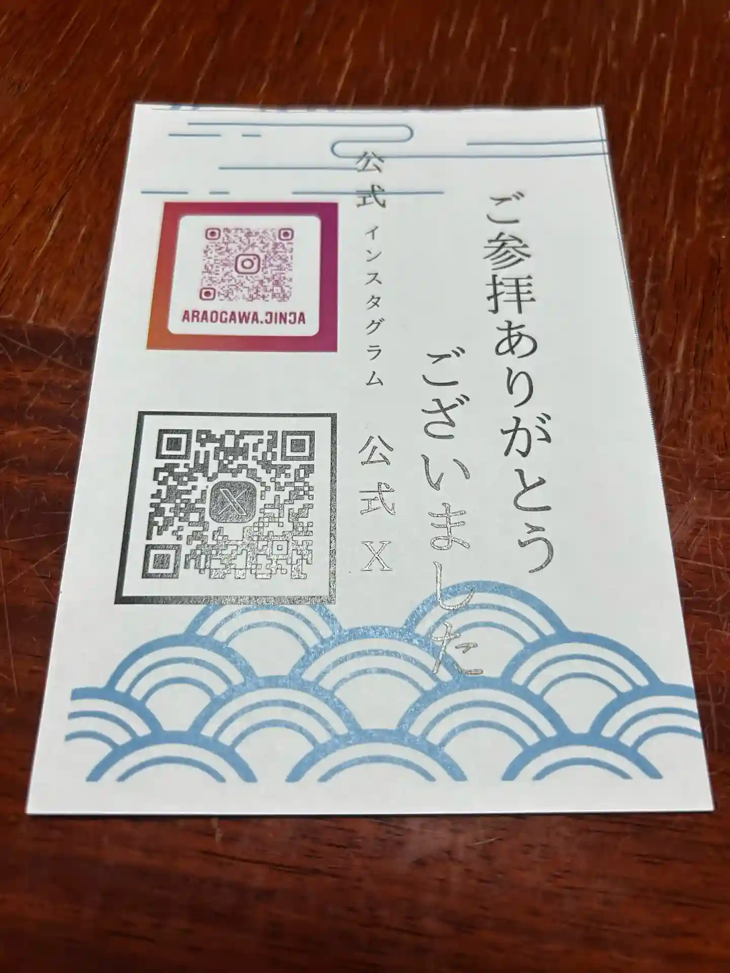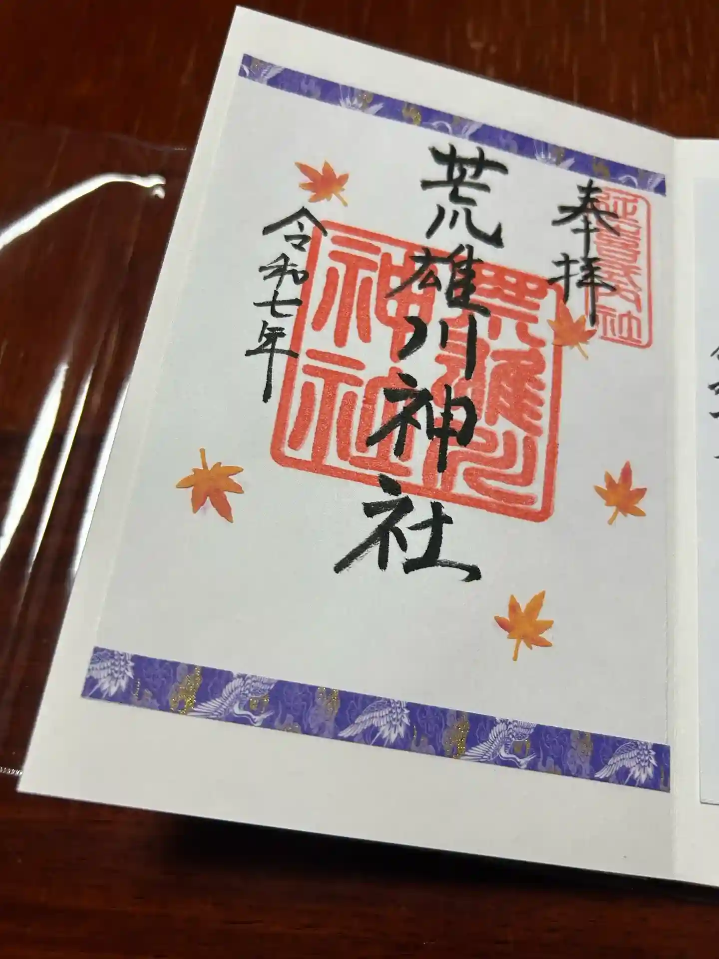 書置きの荒雄川神社の御朱印です