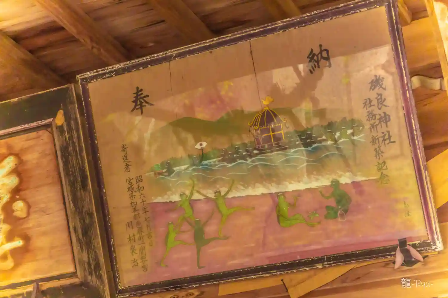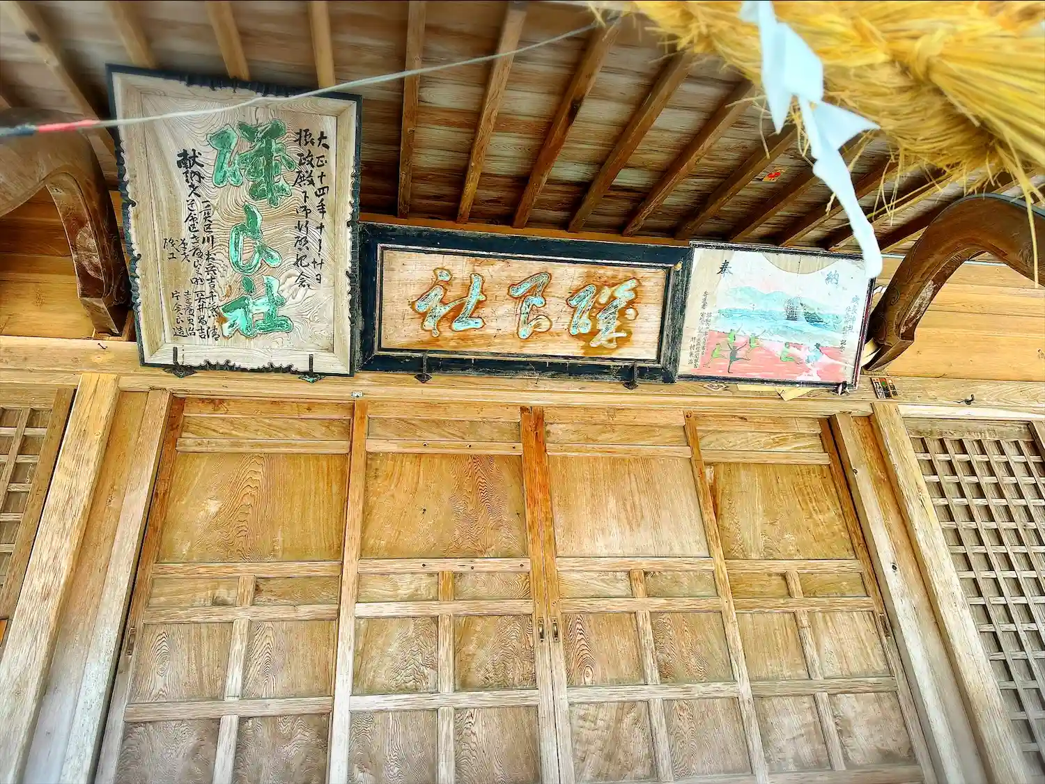 磯良神社 拝殿前上部に掲げてある(奉納額、磯良社額)の様子です
