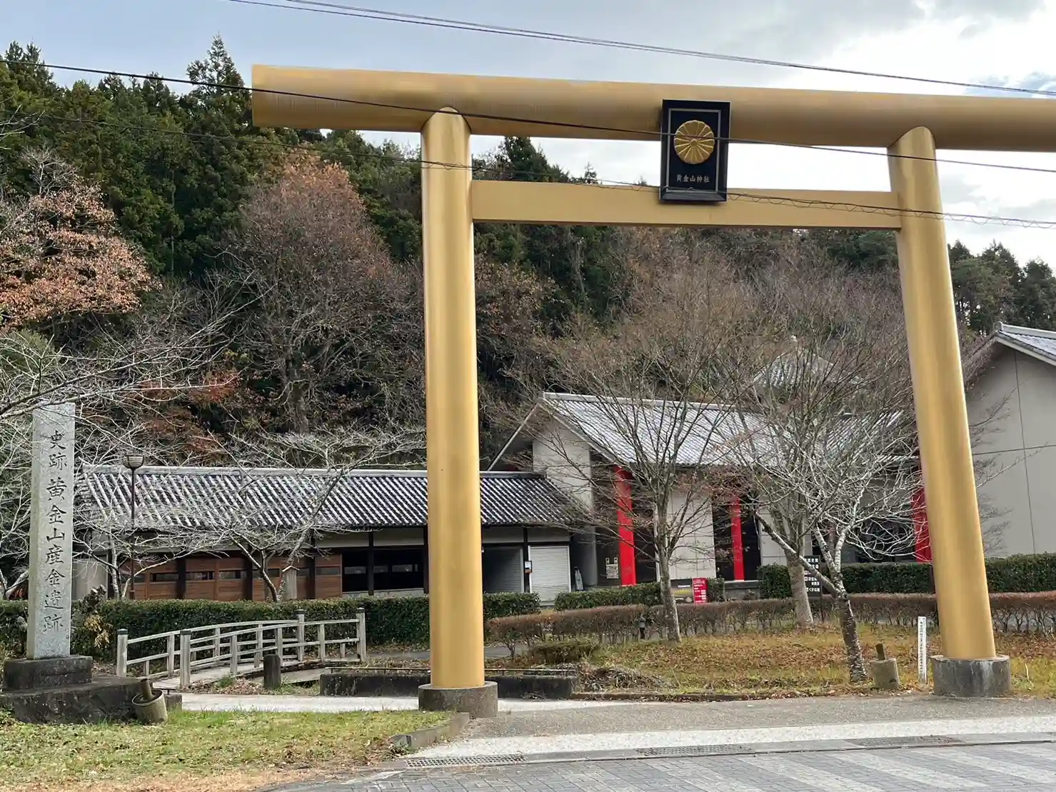 道路っぷちにゴールドの鳥居がある黄金山神社へ詣りました。