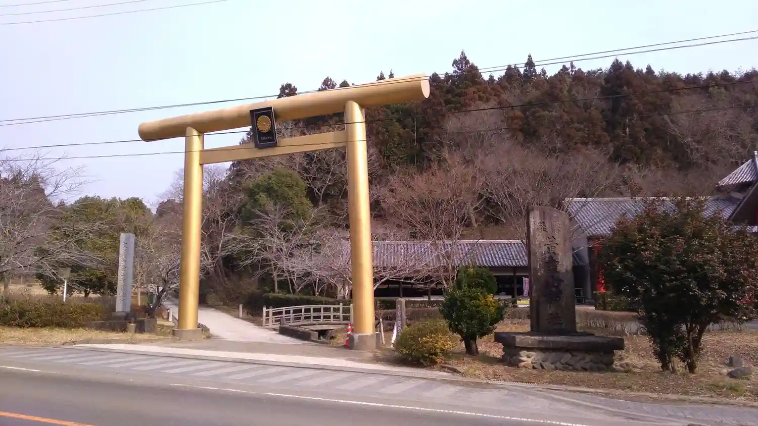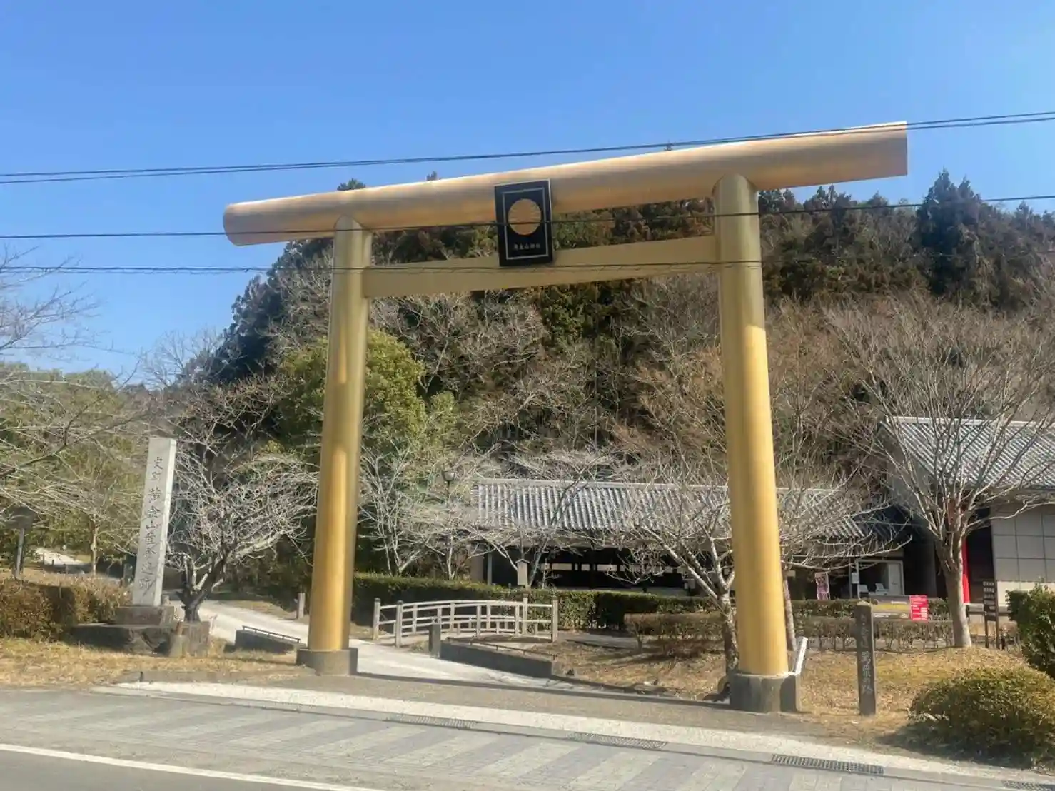 道路っぷちにゴールドの鳥居がある黄金山神社へ詣りました。
