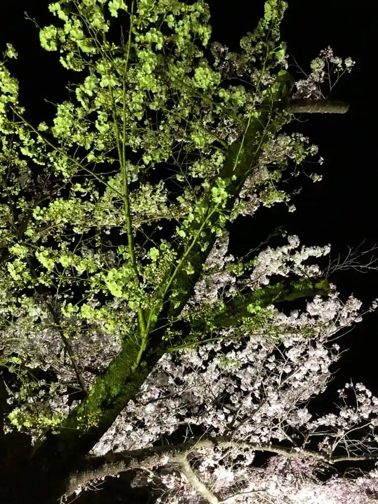 春には桜がたくさん咲いて4月には夜のライトアップもすごく綺麗です🌸ちなみに5年前くらいに夜のライトアップ行ってきました。まだスマホに写真残ってました。こんな感じです✨