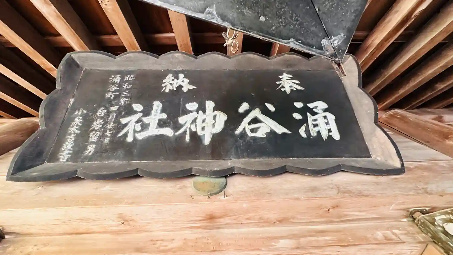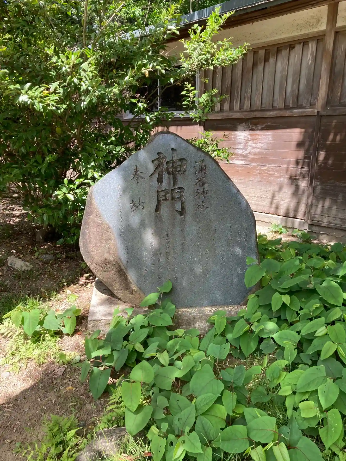 涌谷神社 拝殿左奥に(奉献大金神碑)の様子です