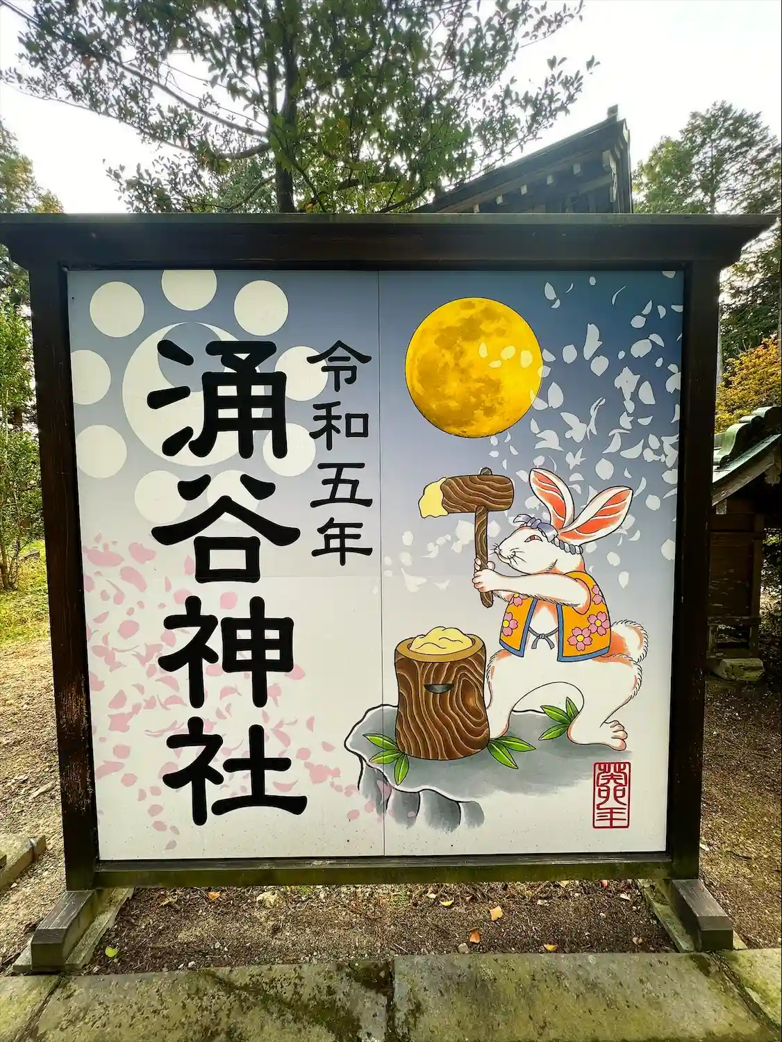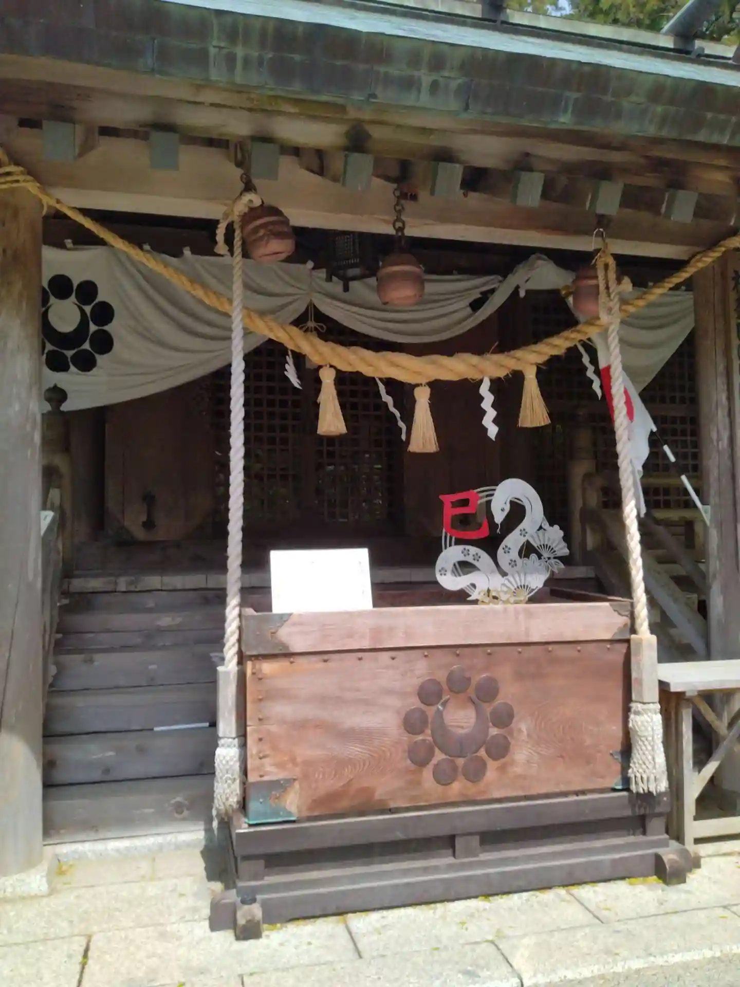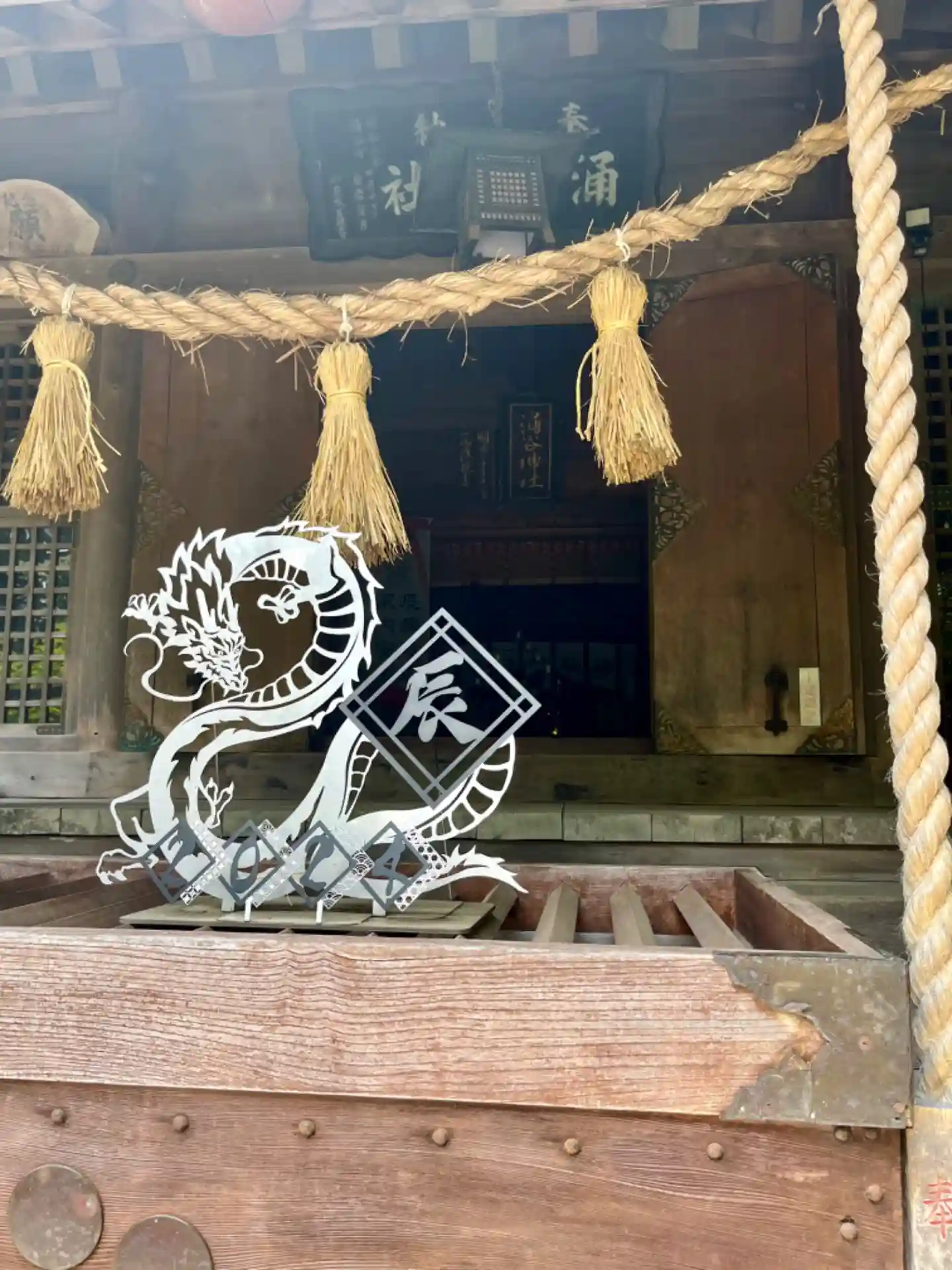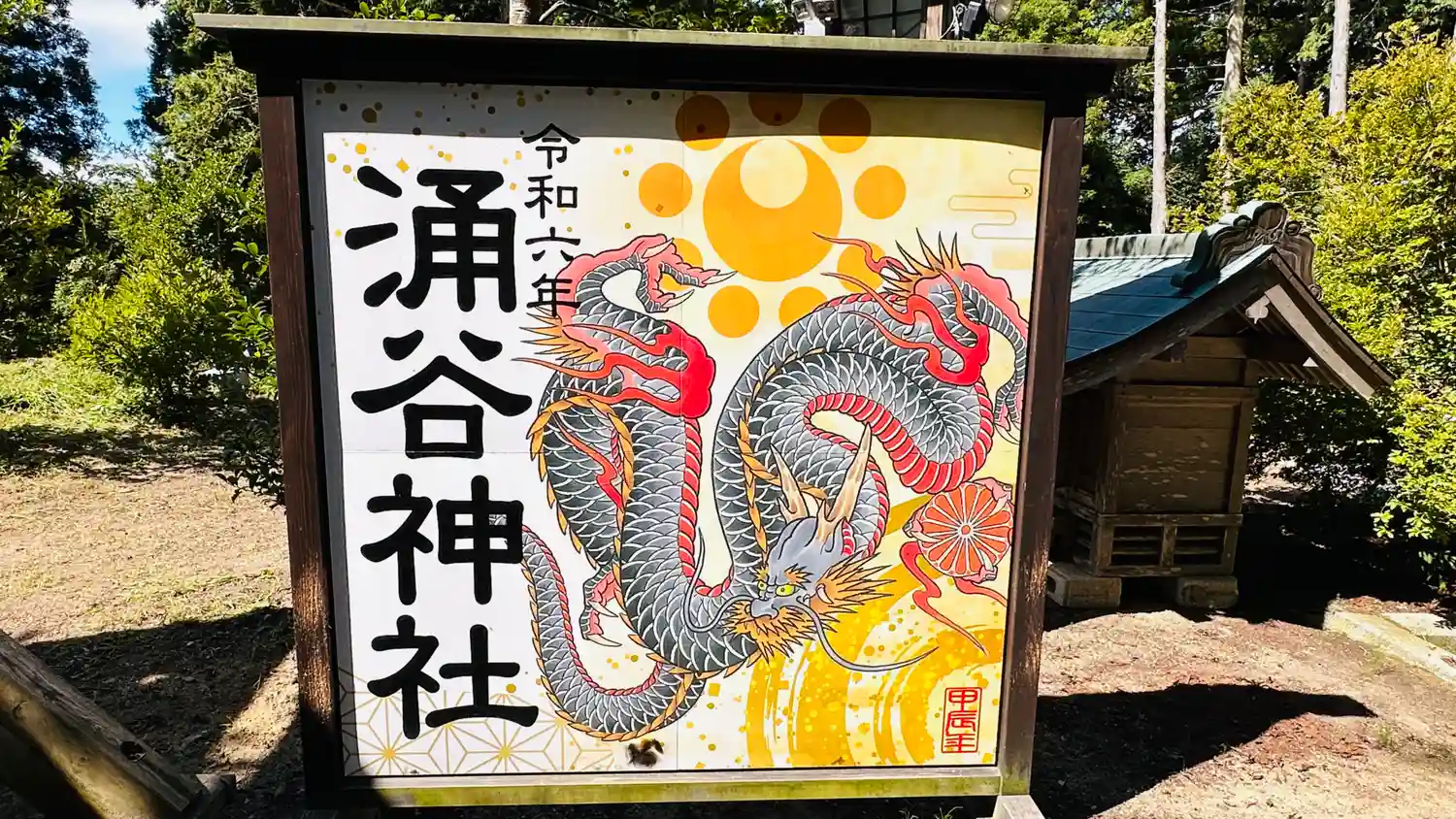涌谷神社 参道左側に(令和七年涌谷神社)巳の絵が飾られています