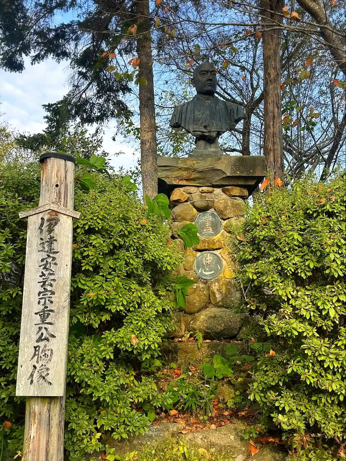 城山公園に鎮座されてます✨伊達安芸宗重公の像がありました。