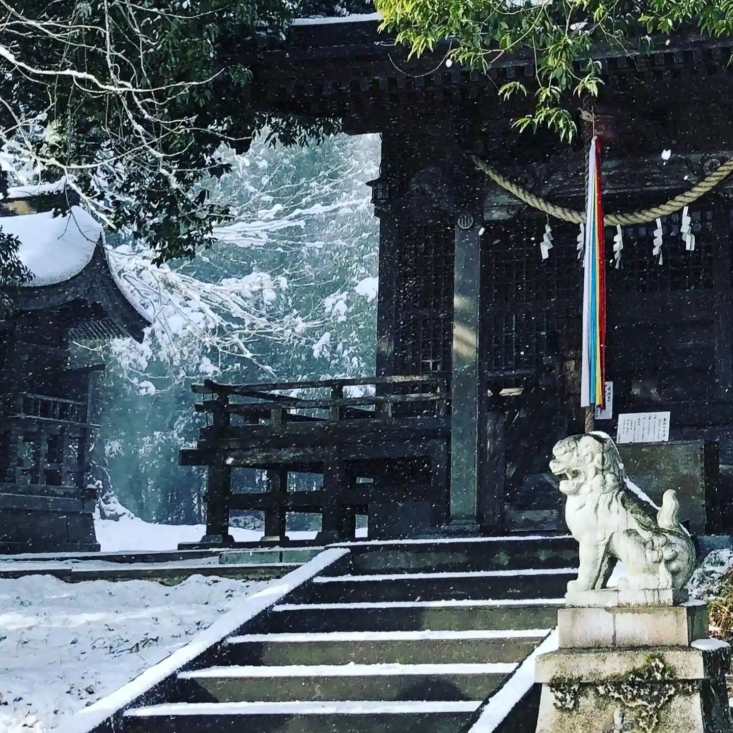 雪が降り続き、手水のお花が凍ってしまいました😭