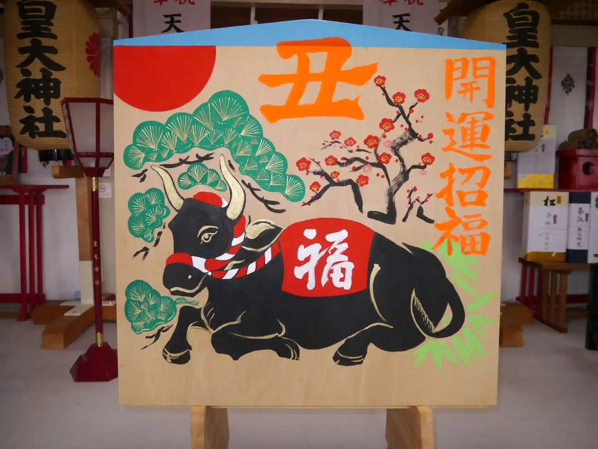 今日から12月 残すところあと1か月 月初めの参拝に行って参りました。丁度宮司さんにお会いに成り少しお見せするのが、早いかもしれませんが来年の干支の宮司さん特製の手作り絵馬を見せて戴きました。『丑』年は八風から吹く風にも不動、動じない、忍耐強さです。