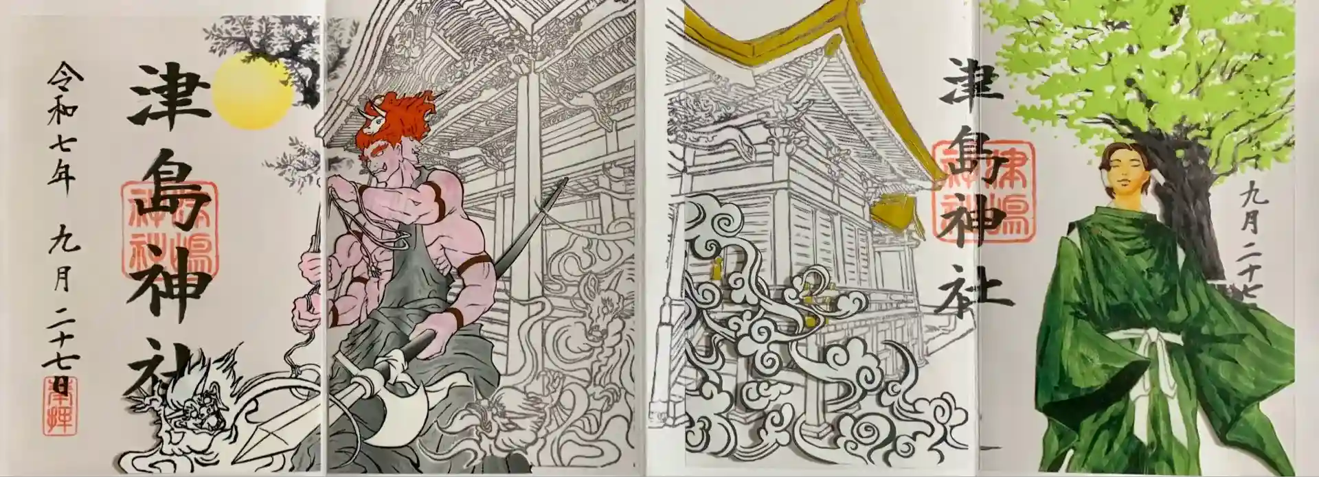 御朱印帳4ページを使って書き入れいただきました。