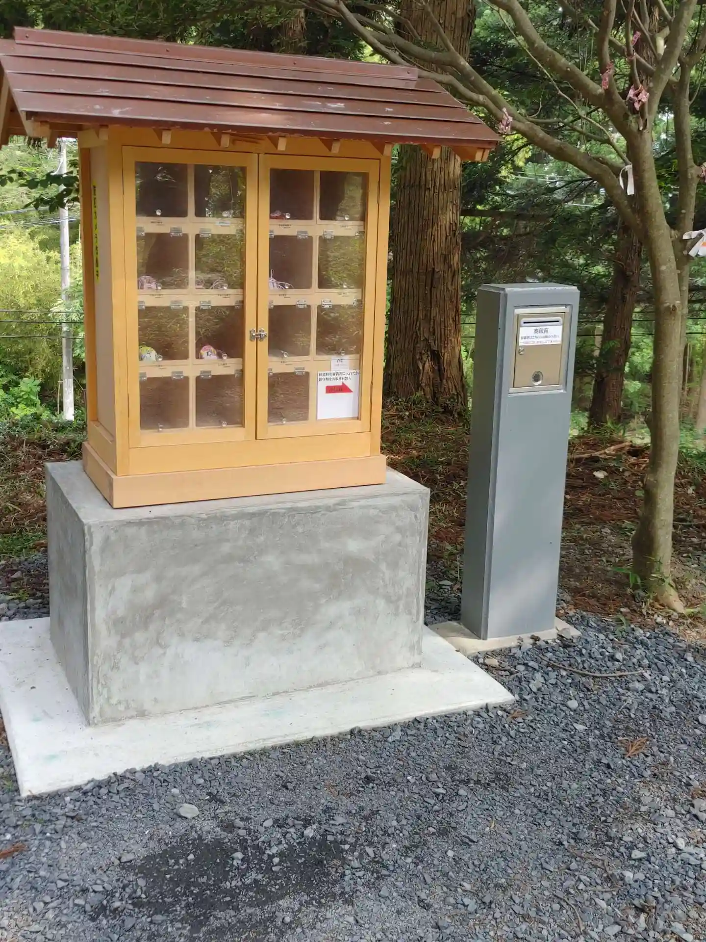 無人の授与所が設置されていて、書置きの御朱印のほか、様々なお守りやおみくじもございました。