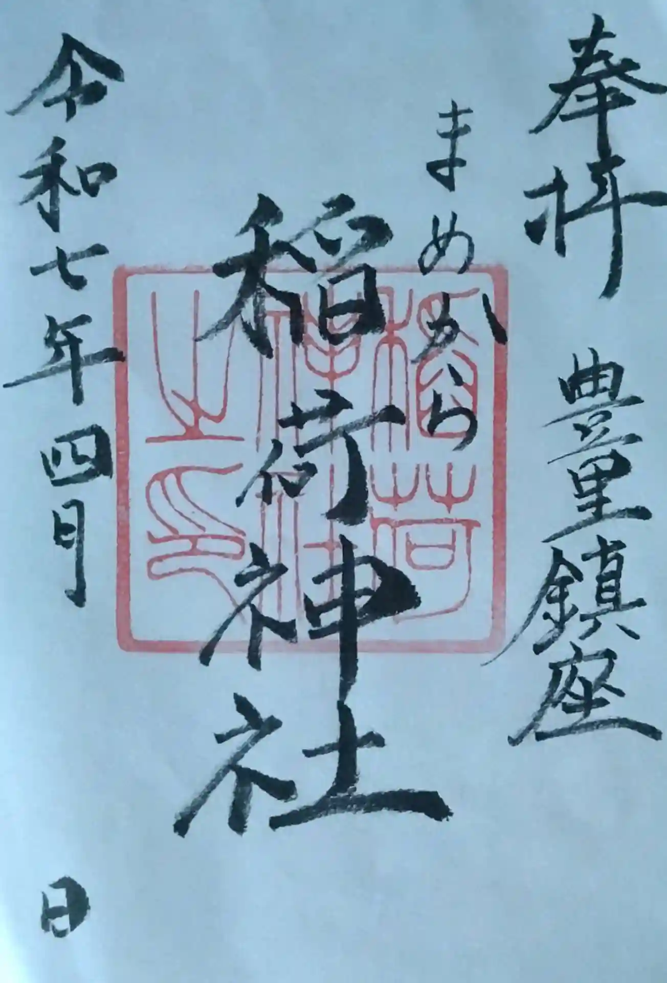稲荷神社(まめからさま)まめからさま稲荷神社書き置き御朱印頂戴致しました(拝殿前右側に箱に入ってました)直書き御朱印を頂戴したい方は(事前に連絡)をするみたいです。