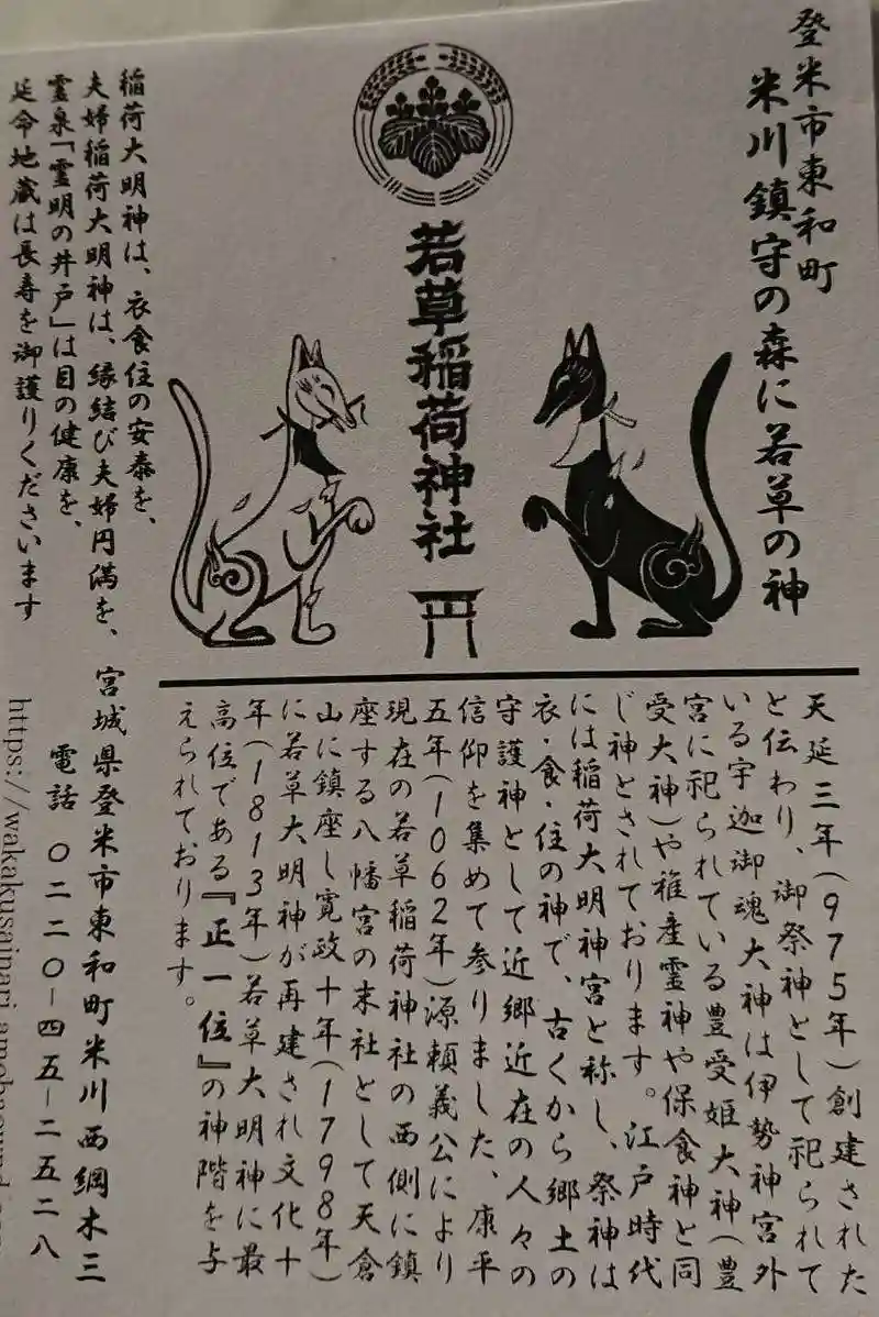 若草稲荷神社様の由緒書きです。