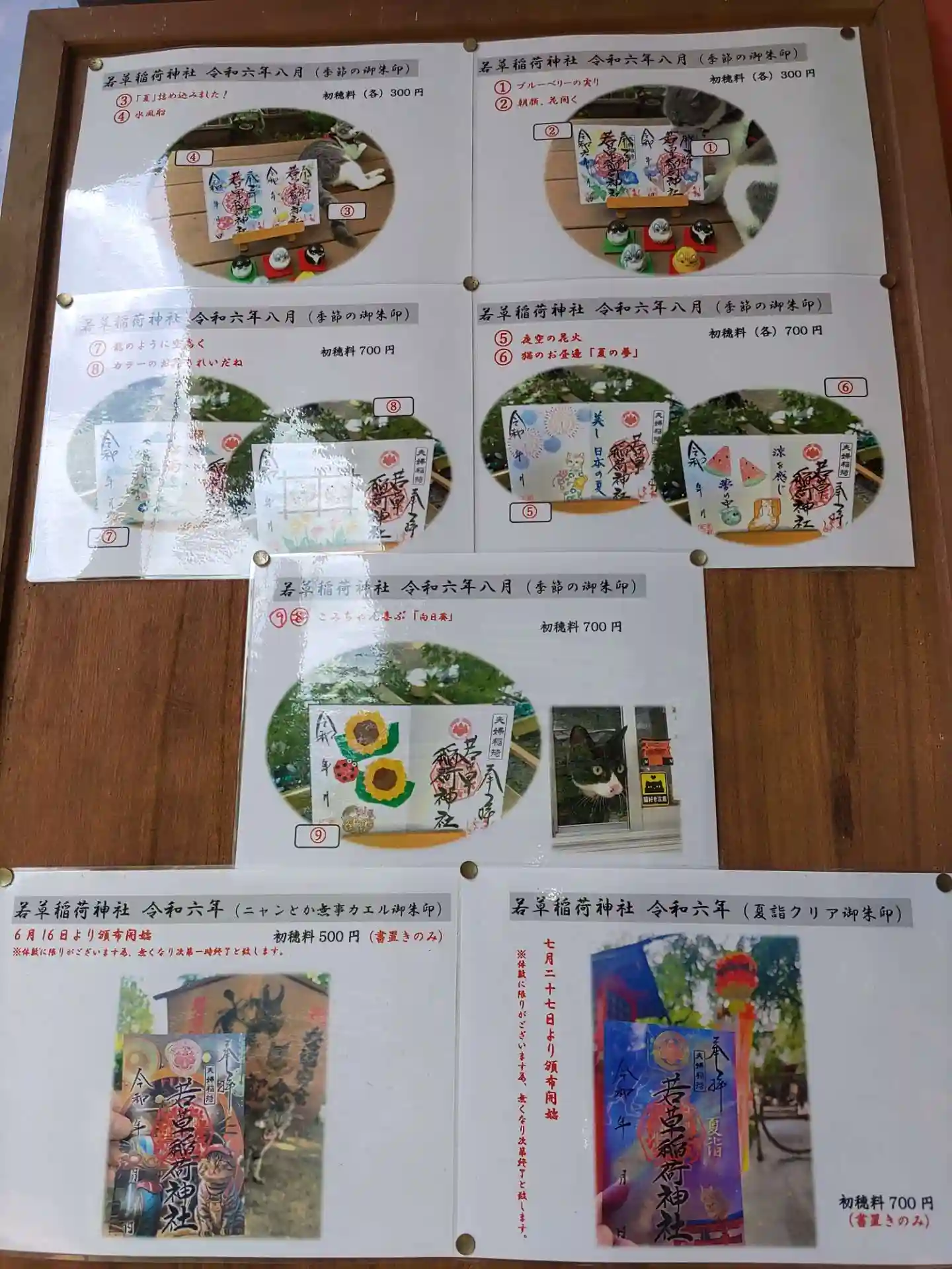 ご由緒書と看板猫ちゃん達のお写真。他の子にも会いたかった!