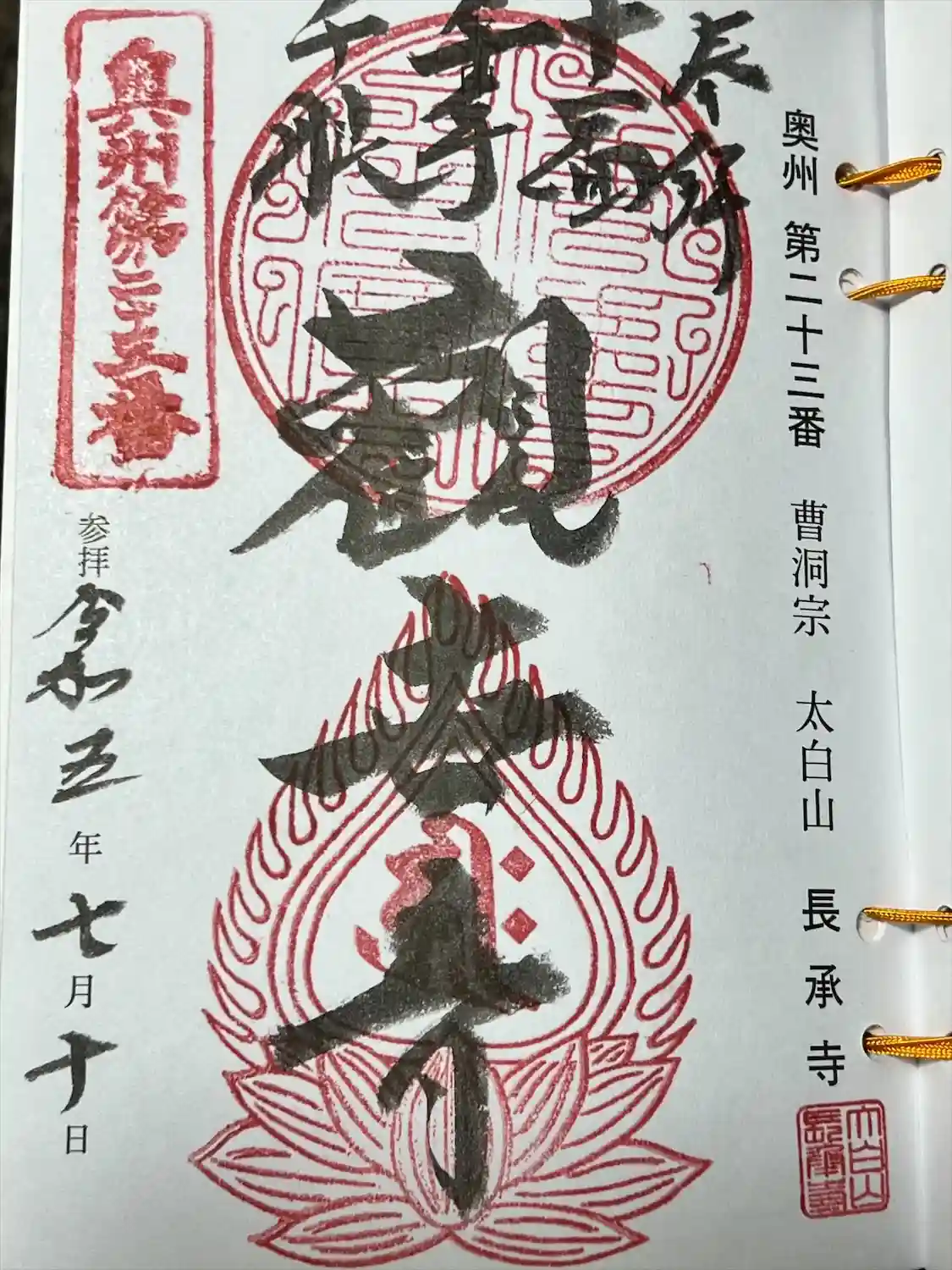 住職さんにとても親切に御朱印 寺院の由緒等話してもらい、心が和む寺院でした、最後には観音堂も拝観させて頂きました、かつては50年に一度、御開帳されていたようですが、現在は常に参拝できるそうです。観音様は写真撮影出来るそうですがお色直しされた円仁作と伝わる御本尊は圧巻で撮影するのを忘れる見入りました、どの様な寺院か引用を用いて調べて見ました、山号は大白山、寺号は長承寺、宗派は曹洞宗、ご本尊は釈迦牟尼佛、札所ご本尊は千手千眼十一面観世音菩薩、奥州三十三観音霊場、第二十三番札所、弘仁元(810)年に慈覚大師円仁が奥州巡錫の際に草庵を結び、しばらく逗留して千手観音菩薩の座像を彫刻、お堂に安置したのがはじまりと伝わります。一山すべてが完成したのは、嘉祥2(849)年、円仁の後継である慈円律師の代で、その際に天台宗補陀山観音寺と号したそうです。