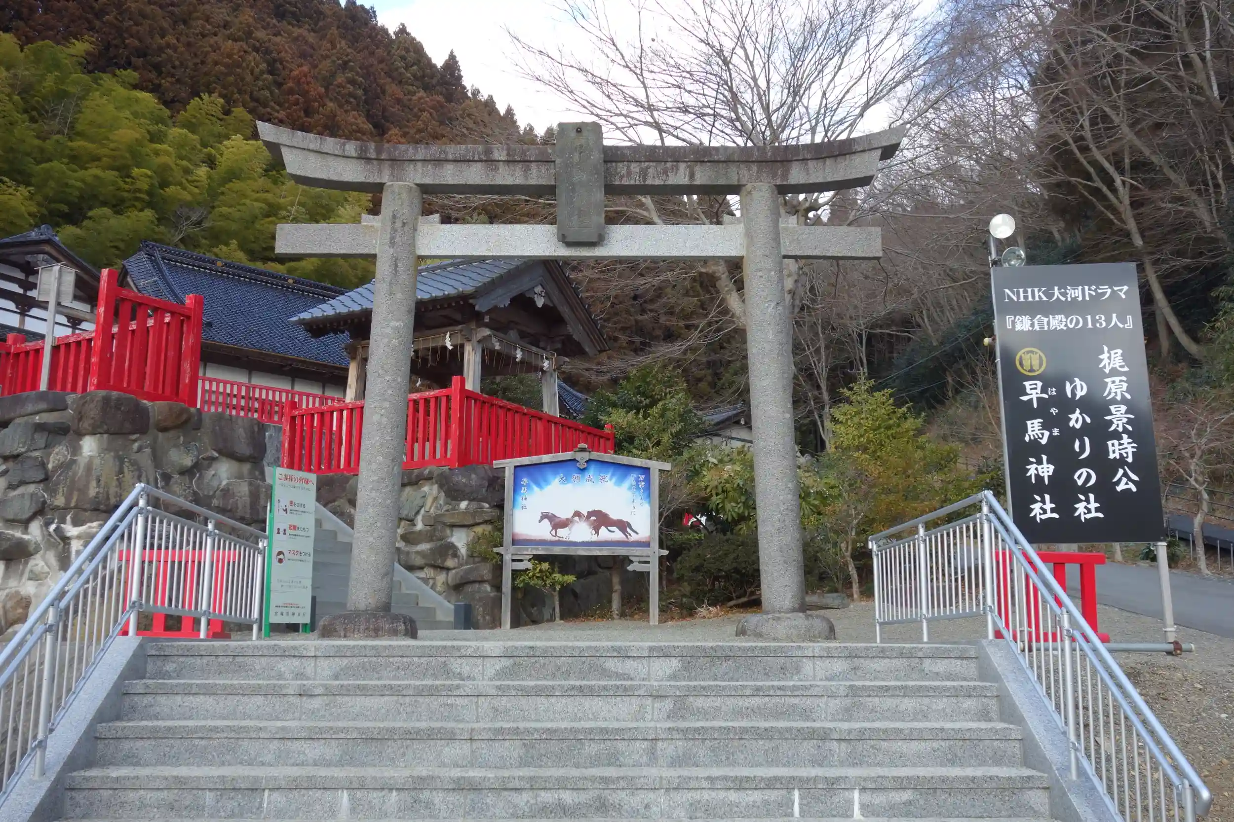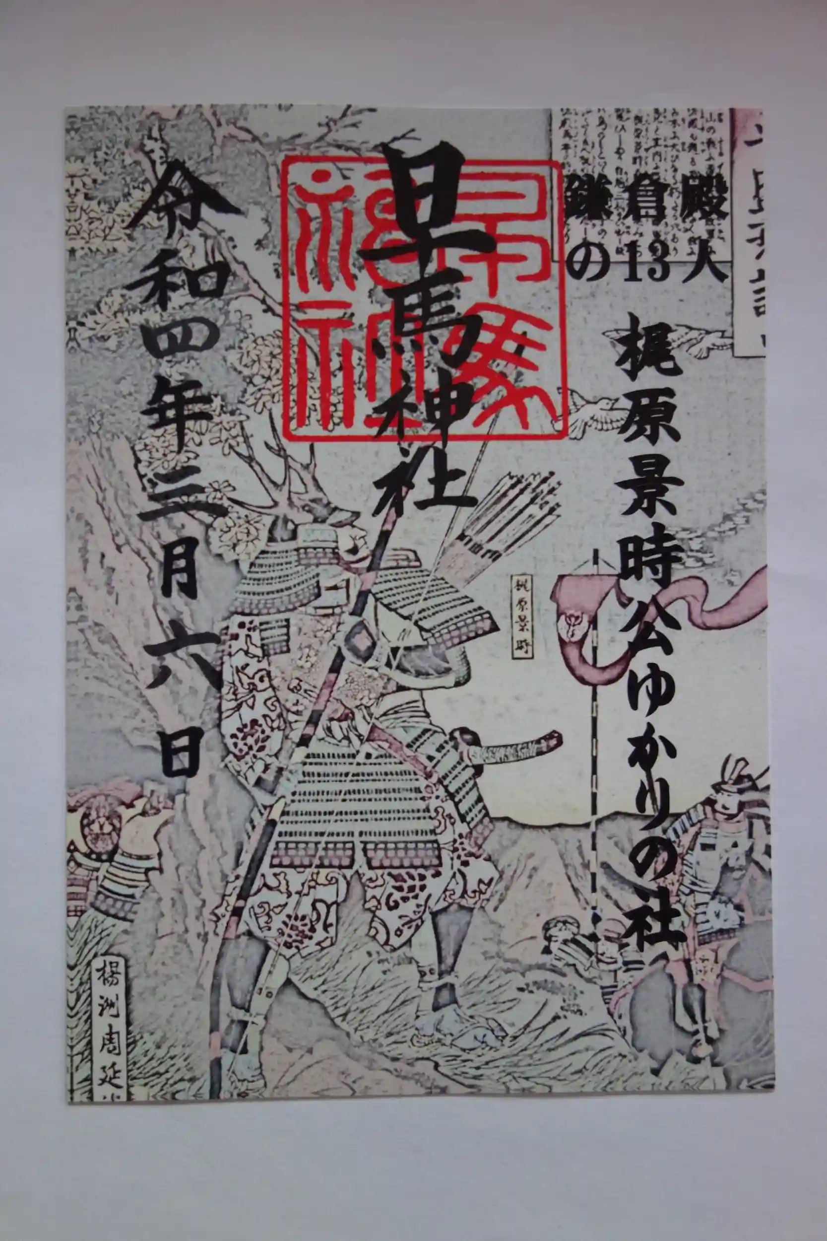早馬神社は鎌倉殿の13人の梶原景時ゆかりの神社で、大河ドラマ期間中は特別御朱印2種類を出しています。1つは手書きと、もう1つは源平合戦、石橋山の戦いを描いた書置きです。