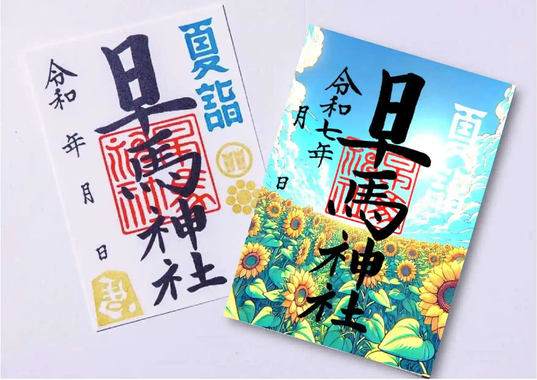 『夏詣』押印御朱印(直書き・左)と夏詣限定朱印(書置き・右)