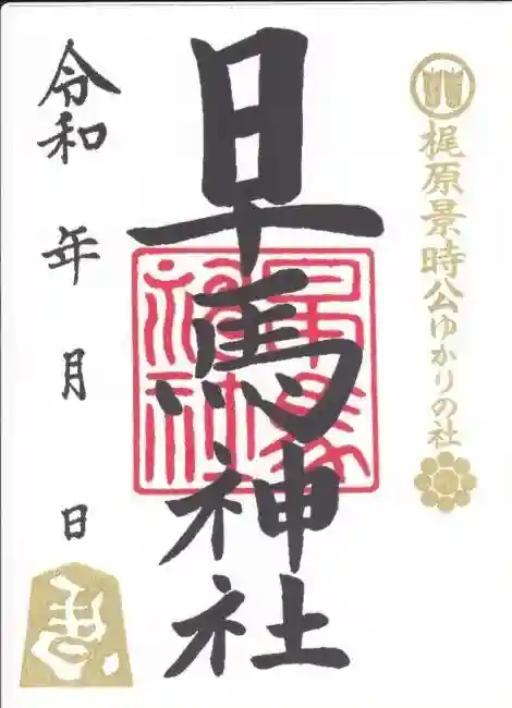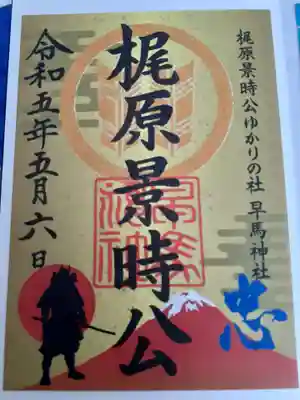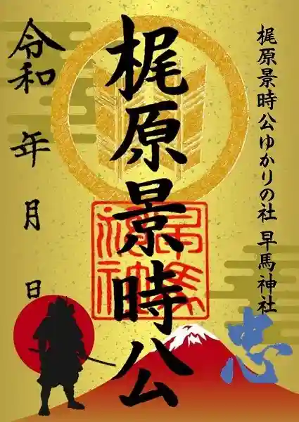 鎌倉武将 梶原景時公の特別御朱印。早馬神社は梶原景時公の兄によって創建されました。