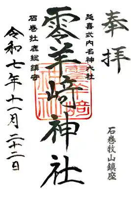 零羊崎神社の御朱印・御朱印帳