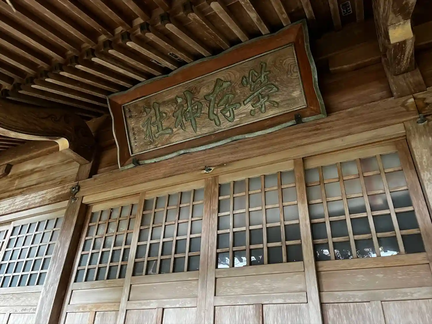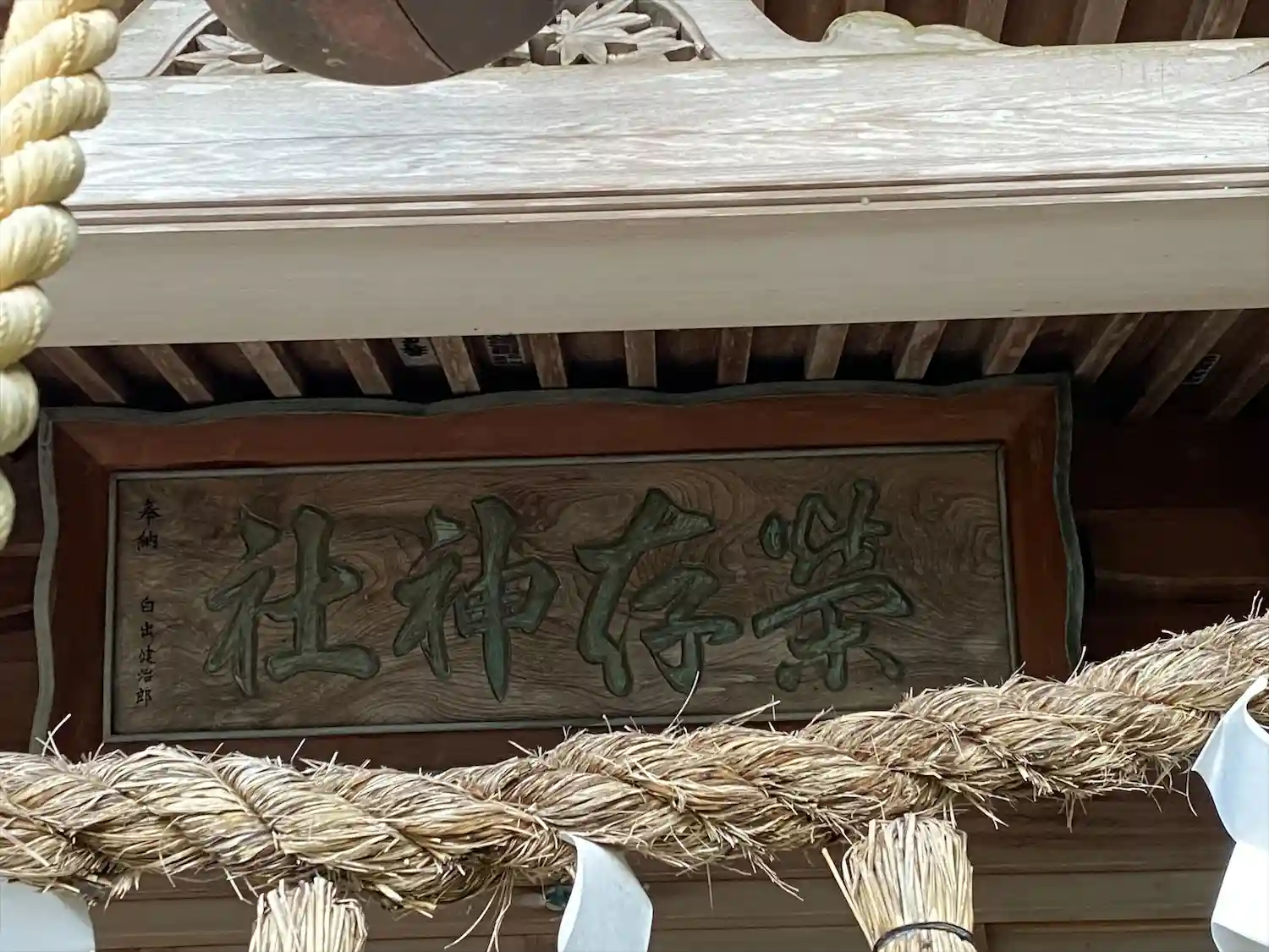 栄存神社 拝殿前上部に掲げてある(榮存神社)の社額の様子です