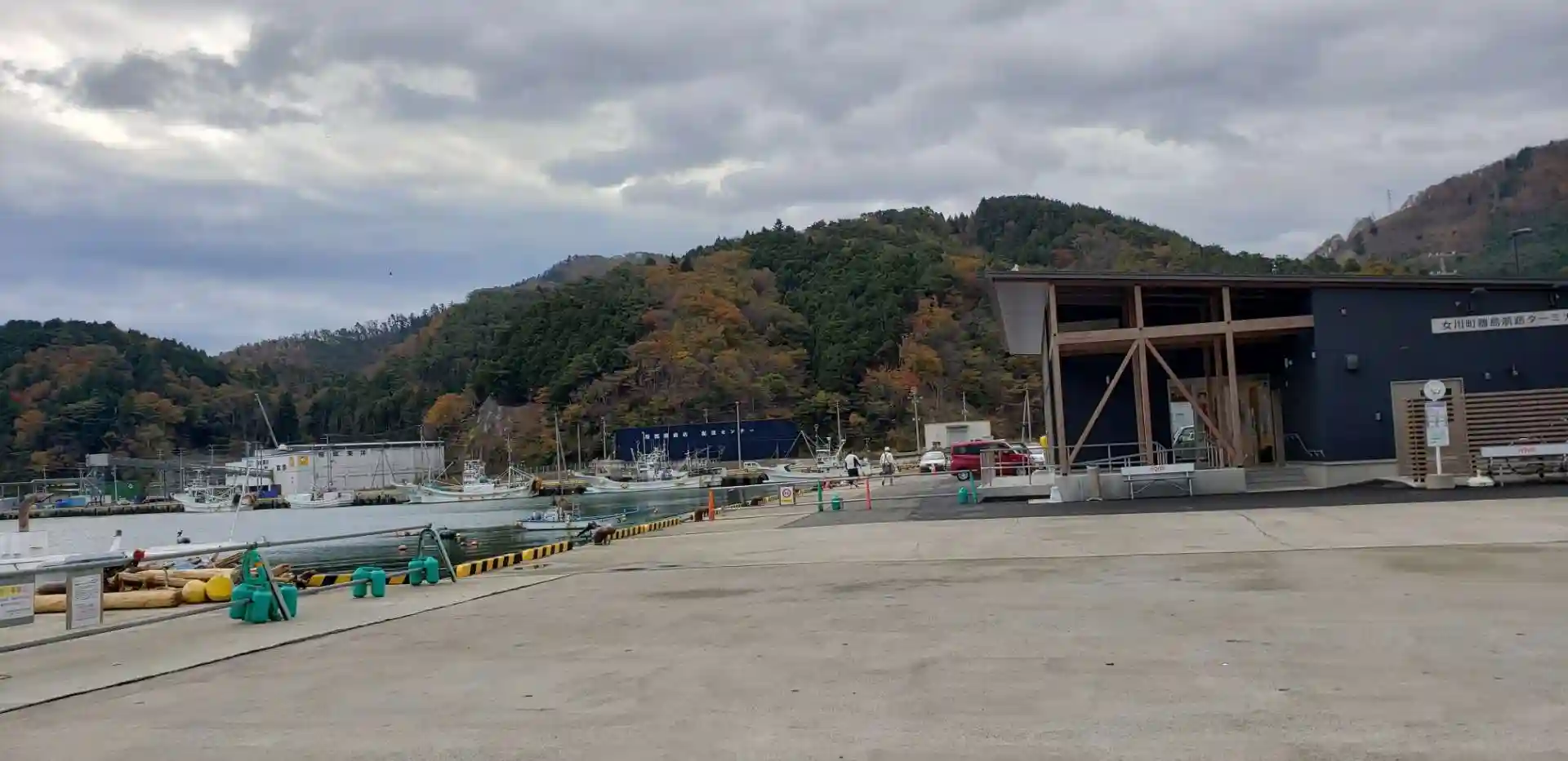 写真右側の建物で往復の乗船券を購入。